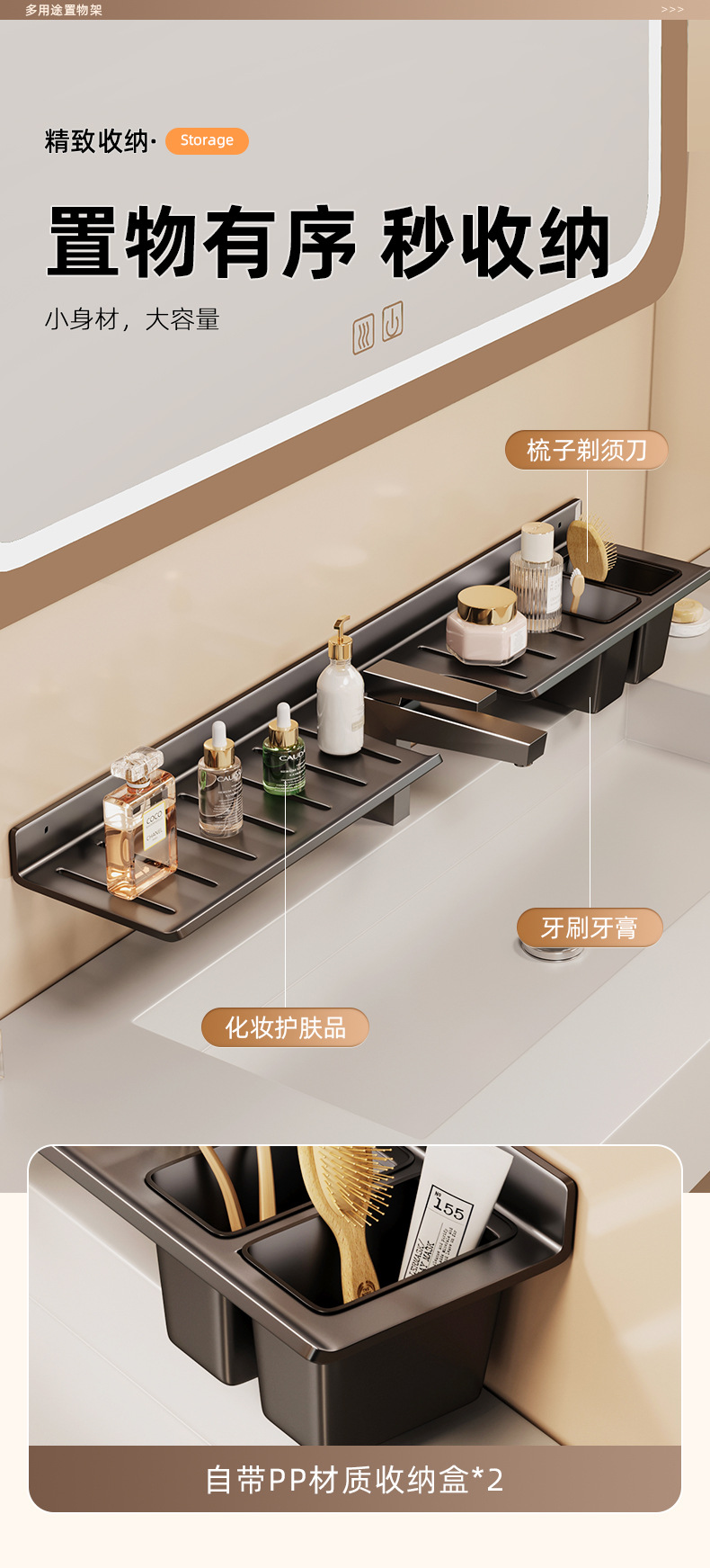 [맞춤형] 욕실 수도꼭지 뒤에 벽걸이형 펀치 없는 욕실 세면대 수납함스토어 가기