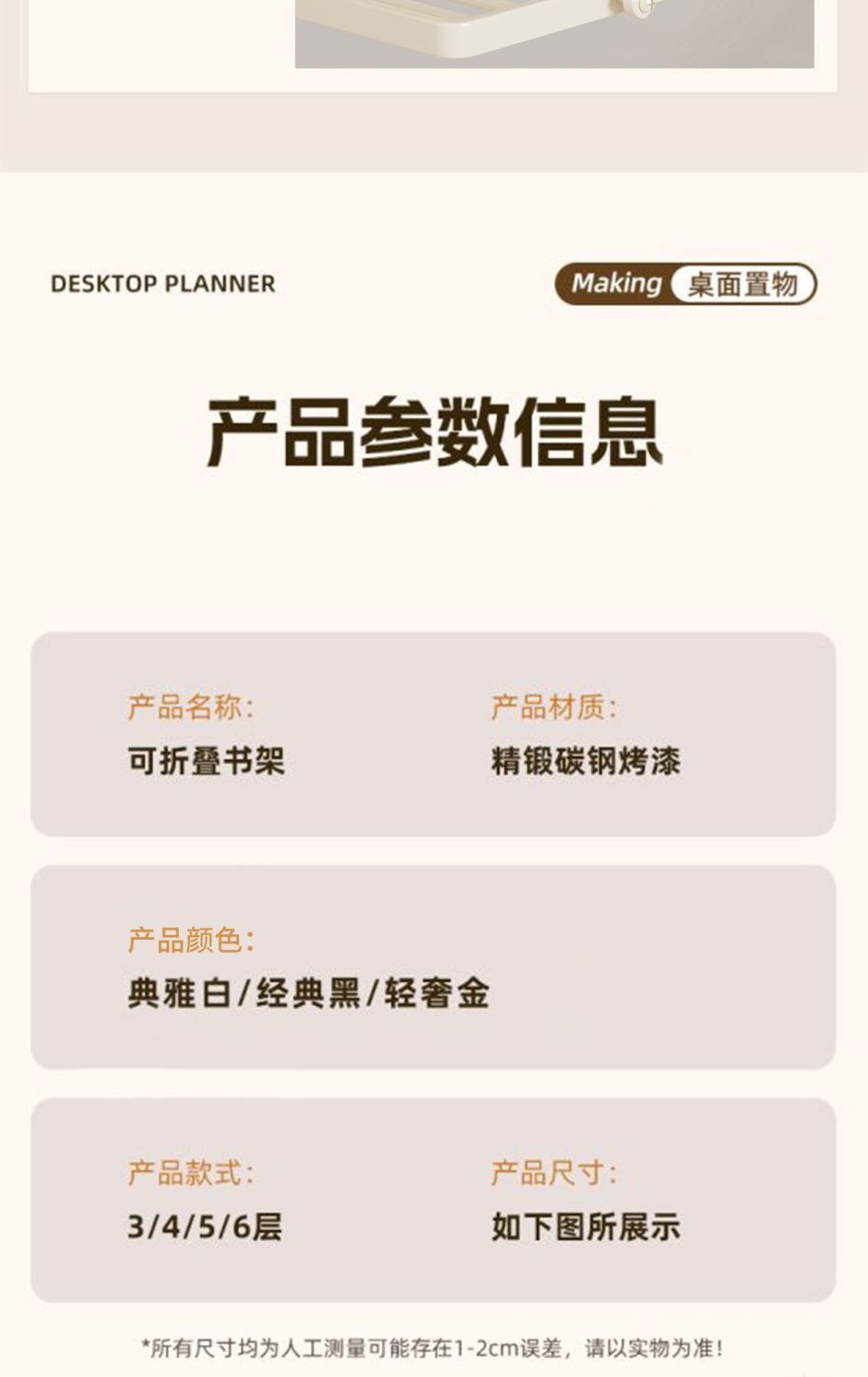 • [골드] 층높이 12.5cm, 가로판 3개, 30cm 작은 책장