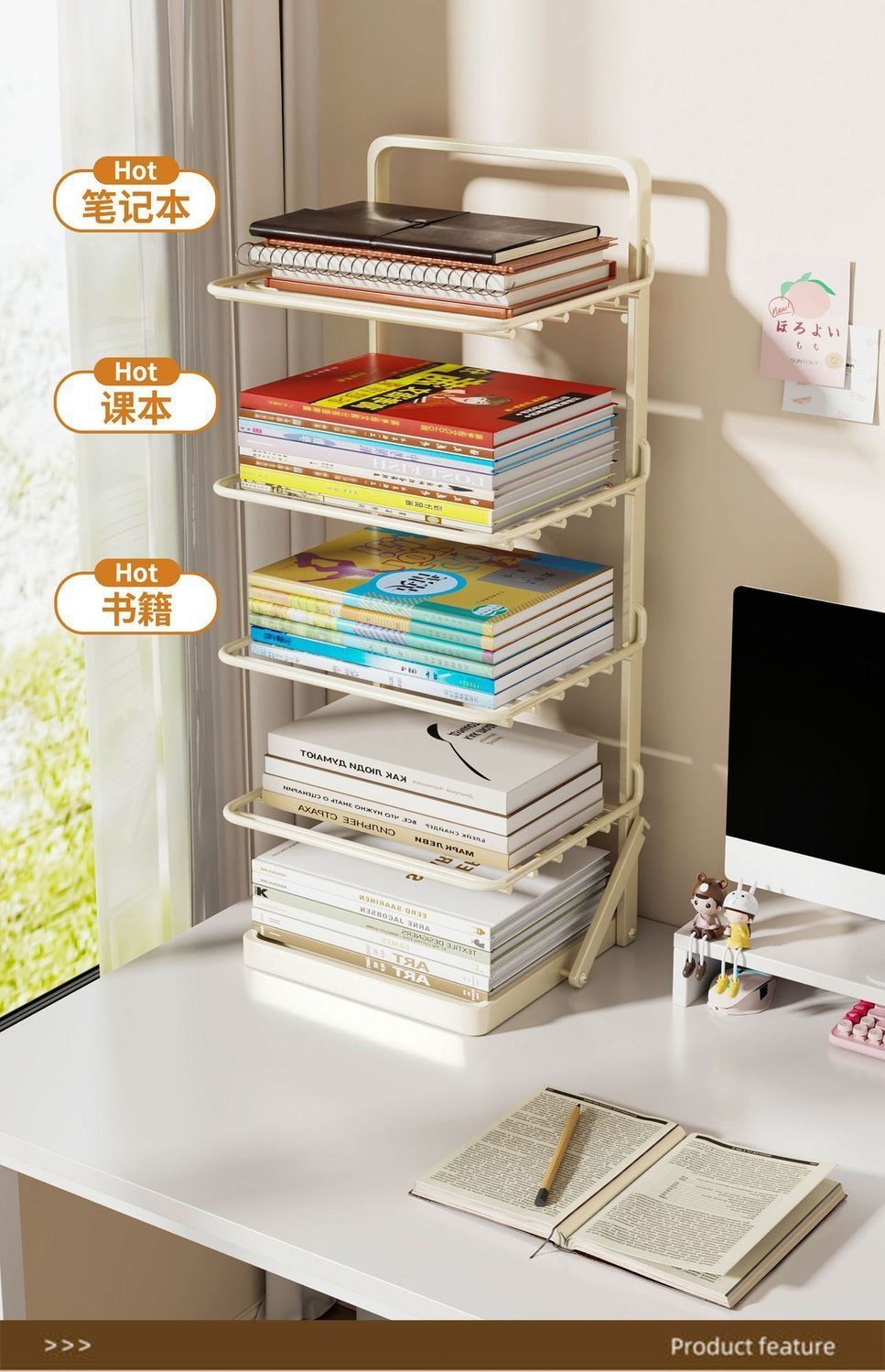데스크탑 책장 책상 수납 선반 간단한 작은 책 책상 수납 선반 학생 이중 용도 접이식스토어 가기