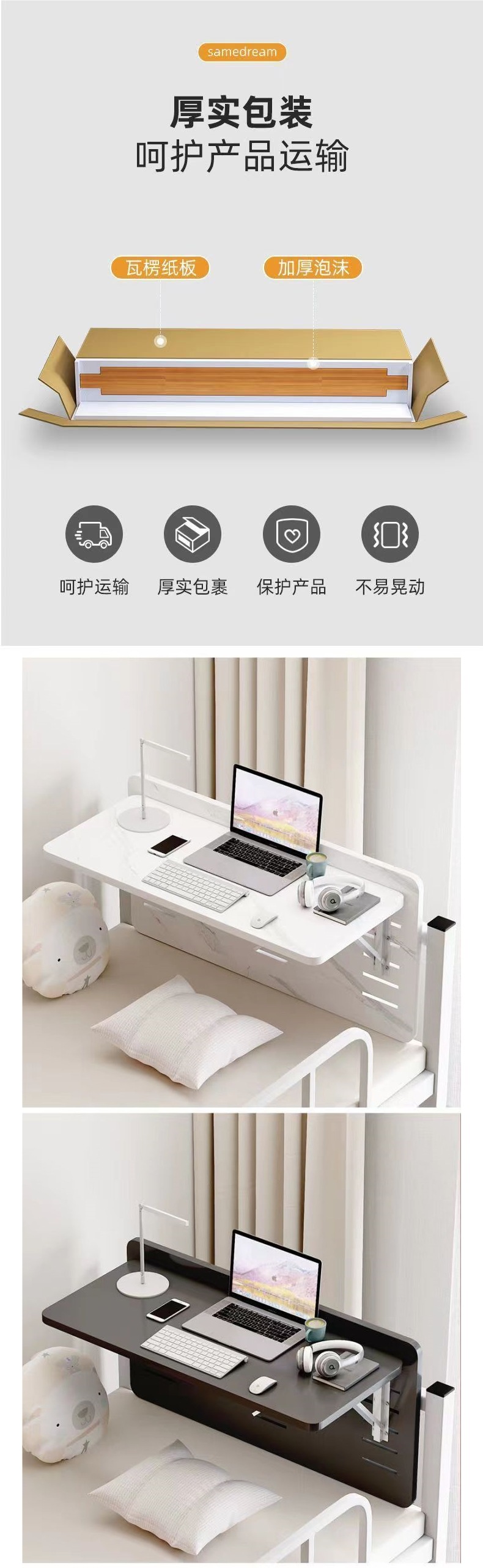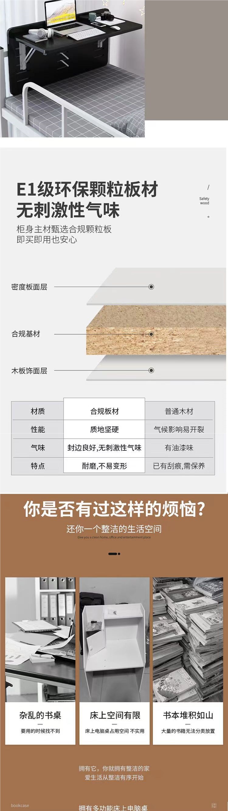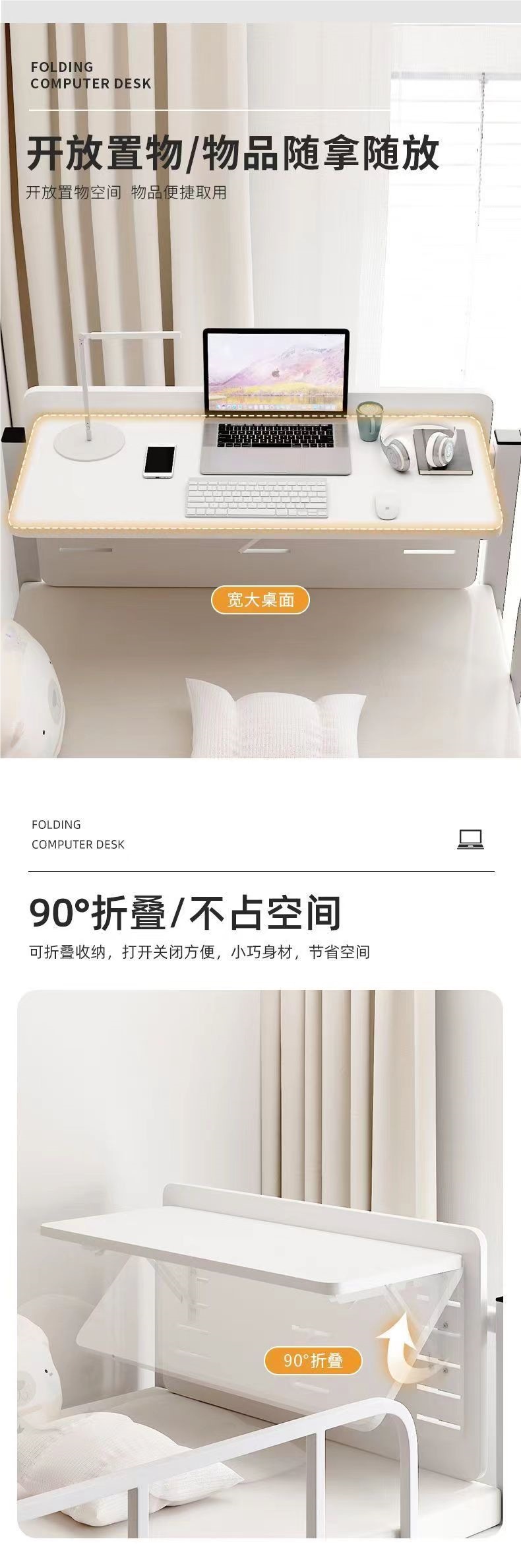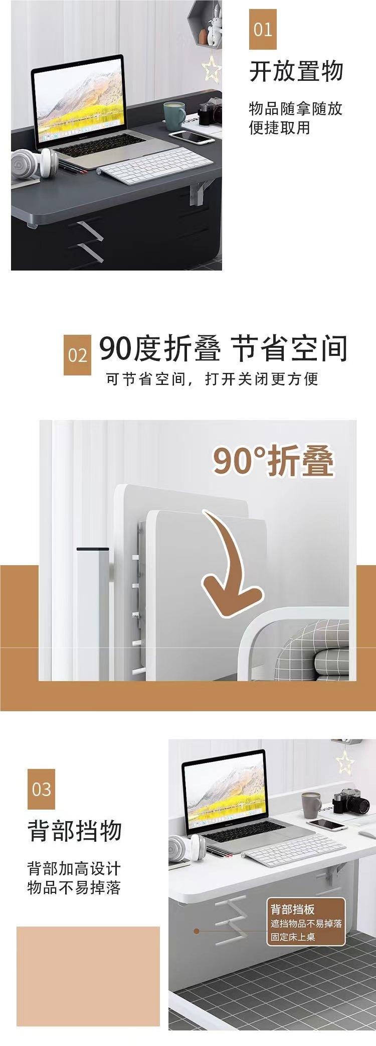 학생 기숙사 침대 테이블 접이식 컴퓨터 테이블 기숙사 책상 작은 테이블 이층 침대 침대 옆 측면 교수형 보관함