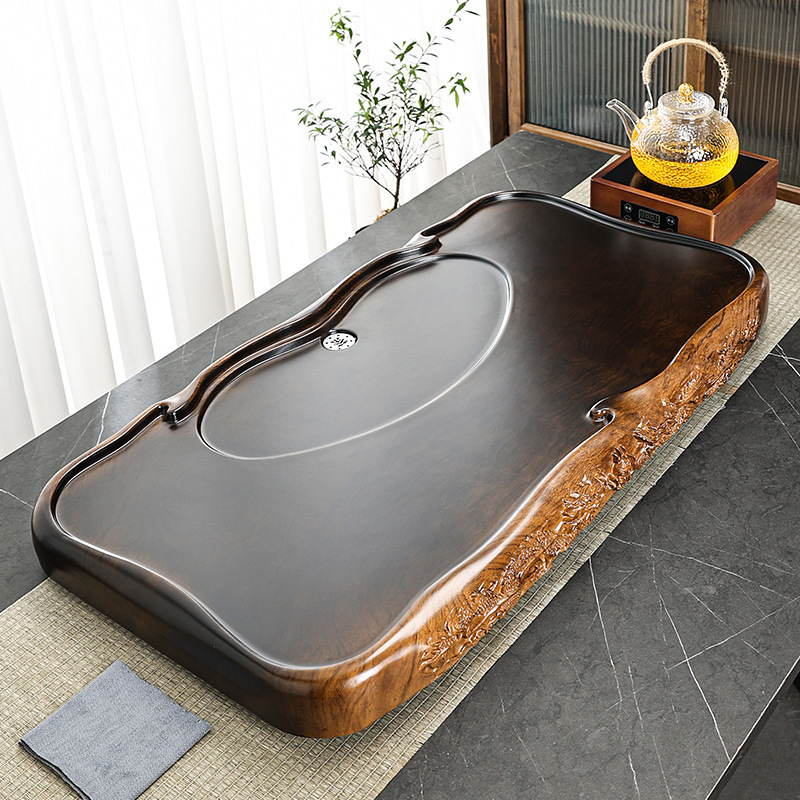 흑단 차 트레이 가정용 통나무 원목 차 바다 차 테이블 배수구가있는 작은 새로운 쿵푸 차 세트 트레이스토어 가기