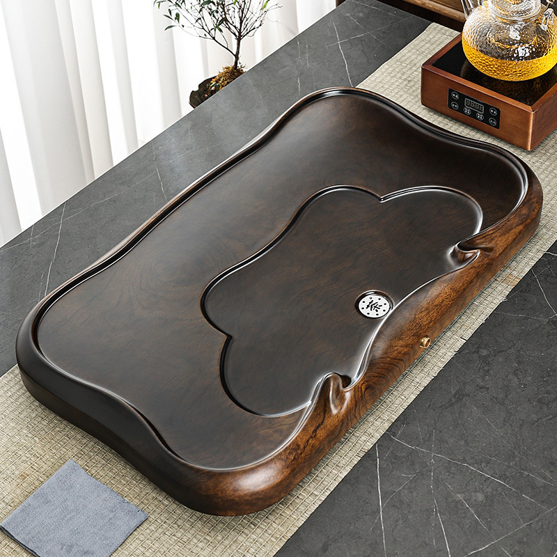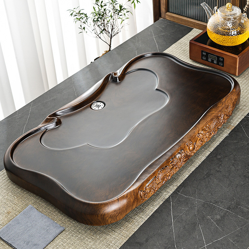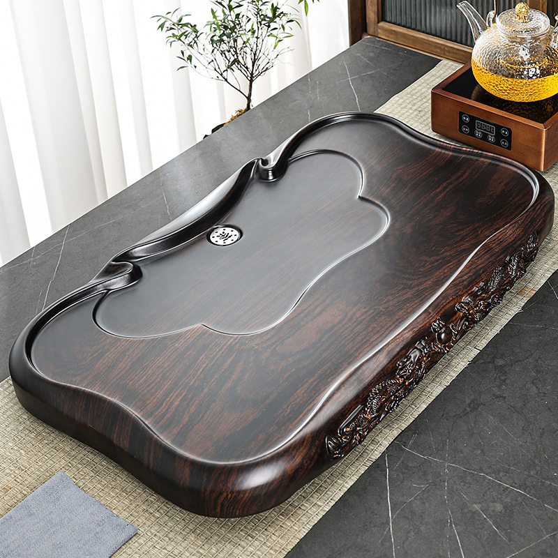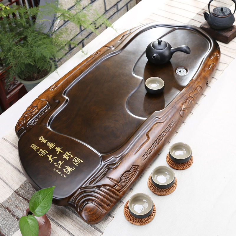 흑단 차 트레이 가정용 통나무 원목 차 바다 차 테이블 배수구가있는 작은 새로운 쿵푸 차 세트 트레이
