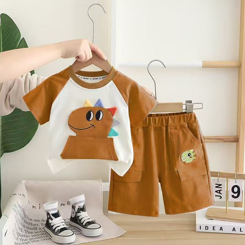 아기 얇은 여름 정장 새 옷 만화 스타일 어린이 소년 여름 반바지 반팔 투피스 세트스토어 가기
