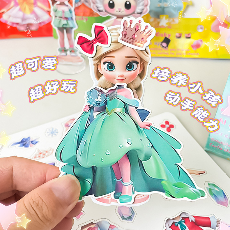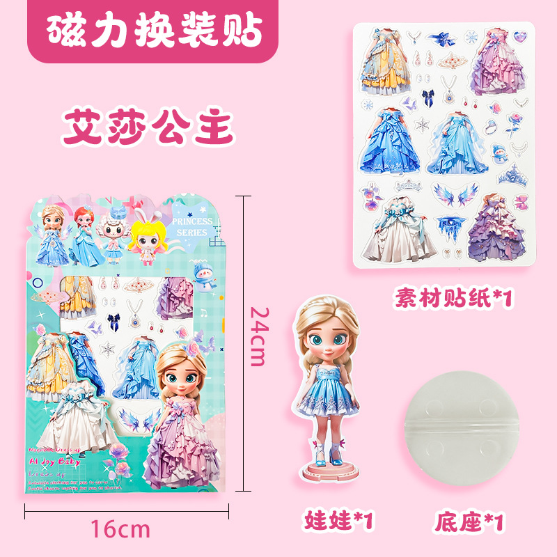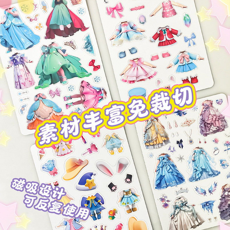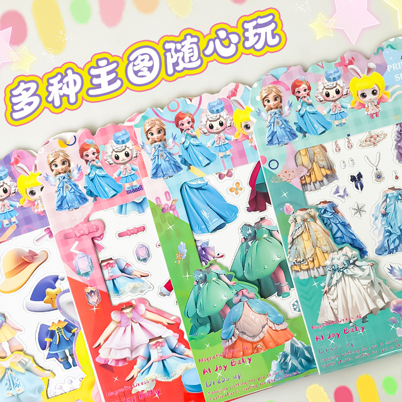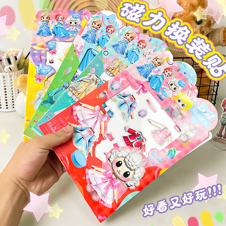 공주 자기 드레스 업 자기 스티커 어린이 자기 스티커 소녀 반복 스티커 장난감 냉장고 diy 만화스토어 가기