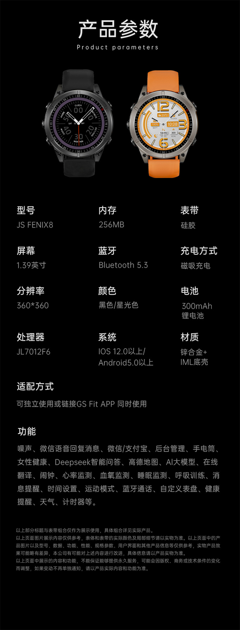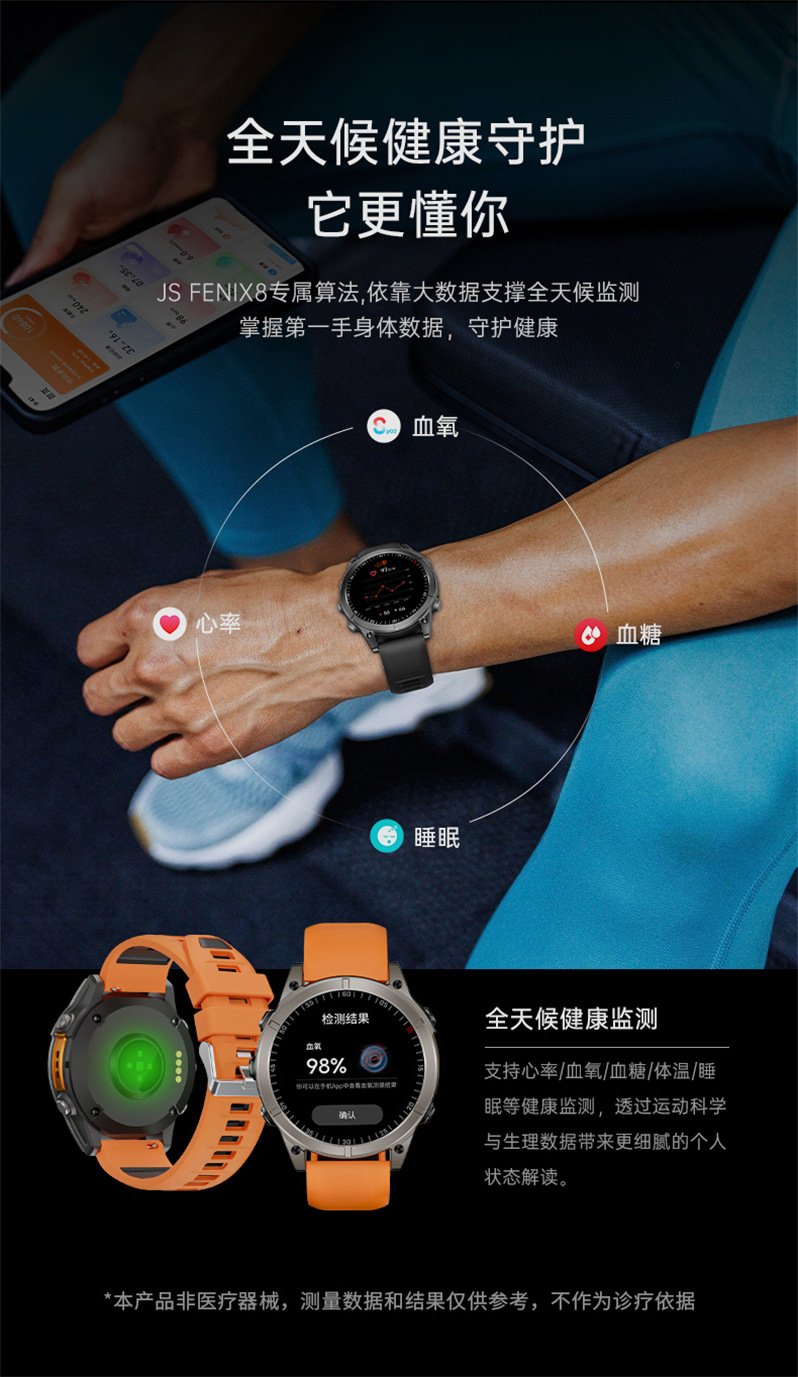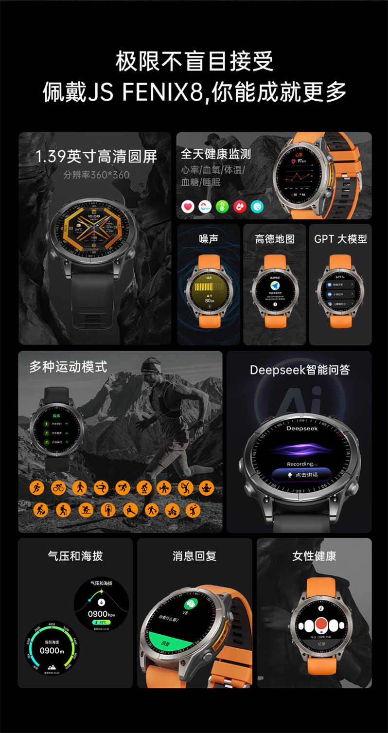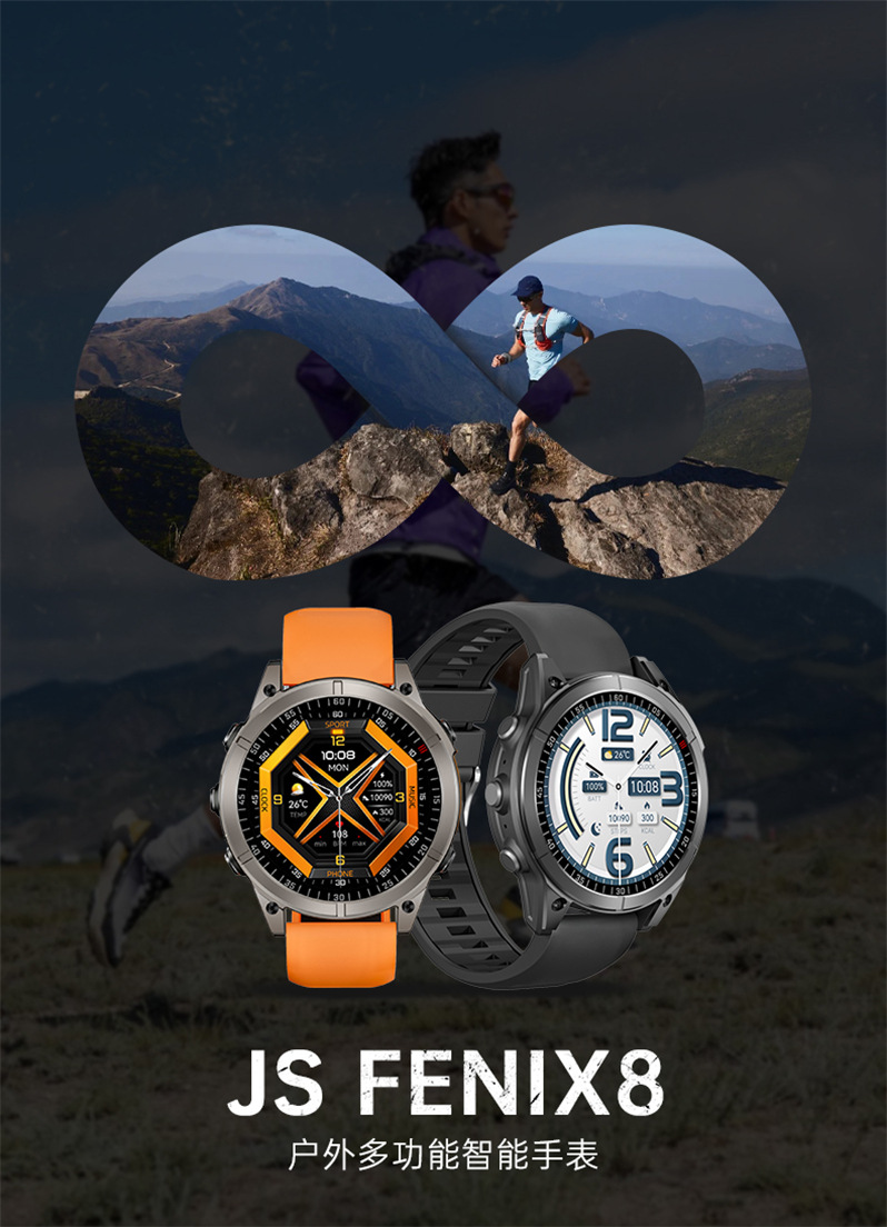 국경을 넘는 신제품 JS Fenix8 스마트워치 블루투스 통화 심박수 음성 비서 다기능 스포츠 팔찌 도매스토어 가기