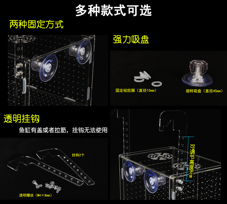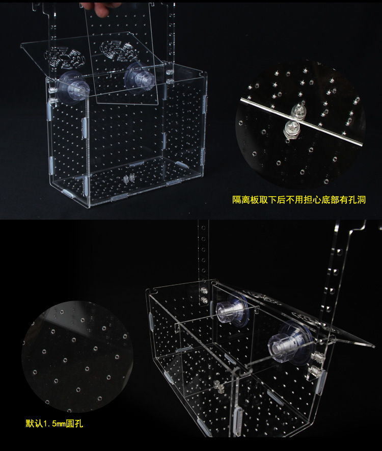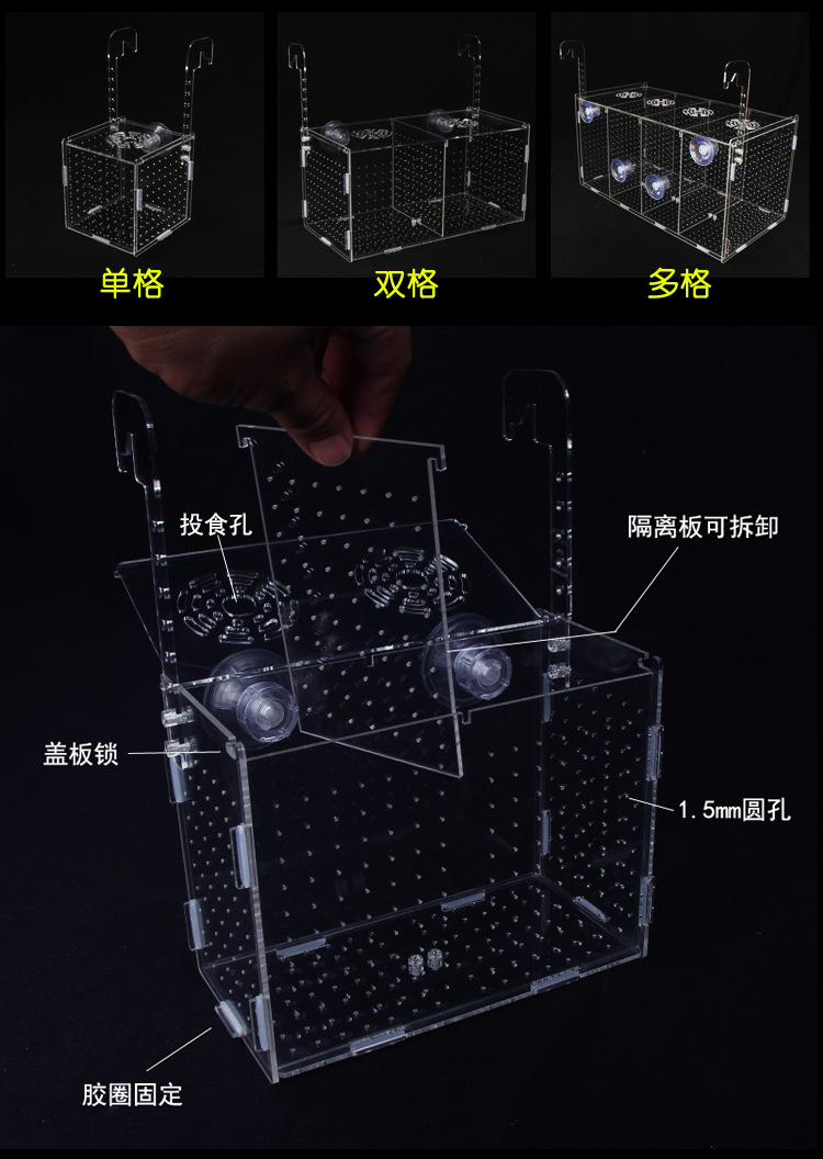 수조 격리 상자 보드, 아크릴 흡입 컵 및 후크, 물고기 부화 상자, 수족관 어린 어린이 부화 및 번식 상자, 다중 그리드스토어 가기