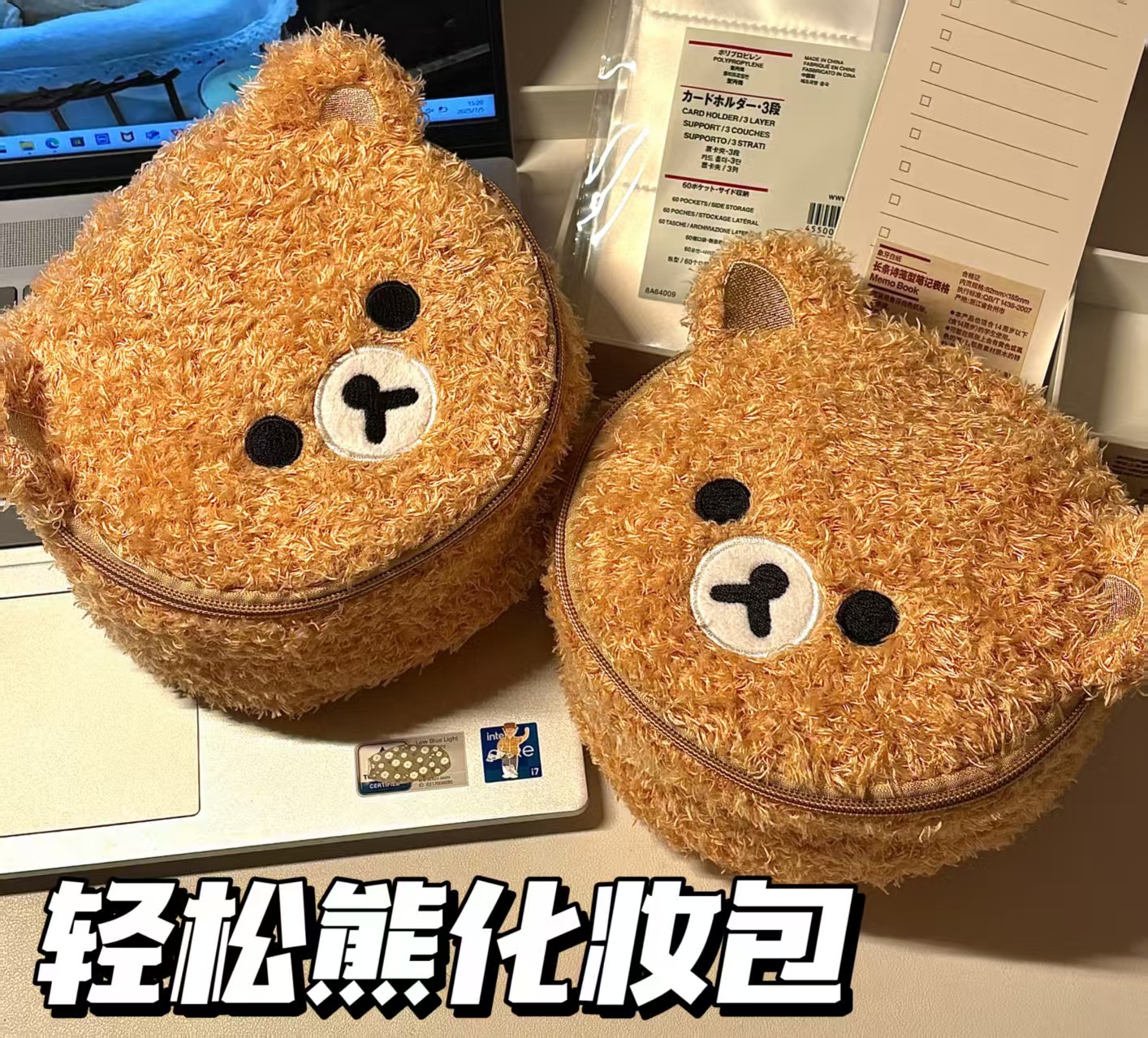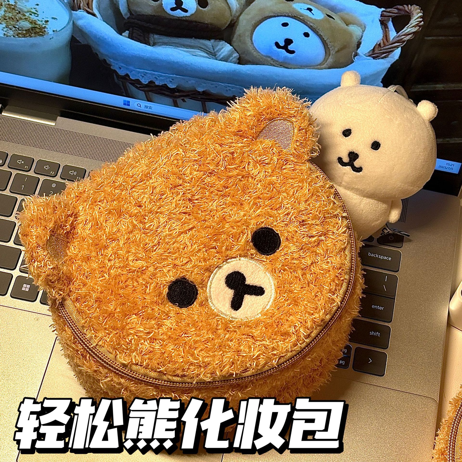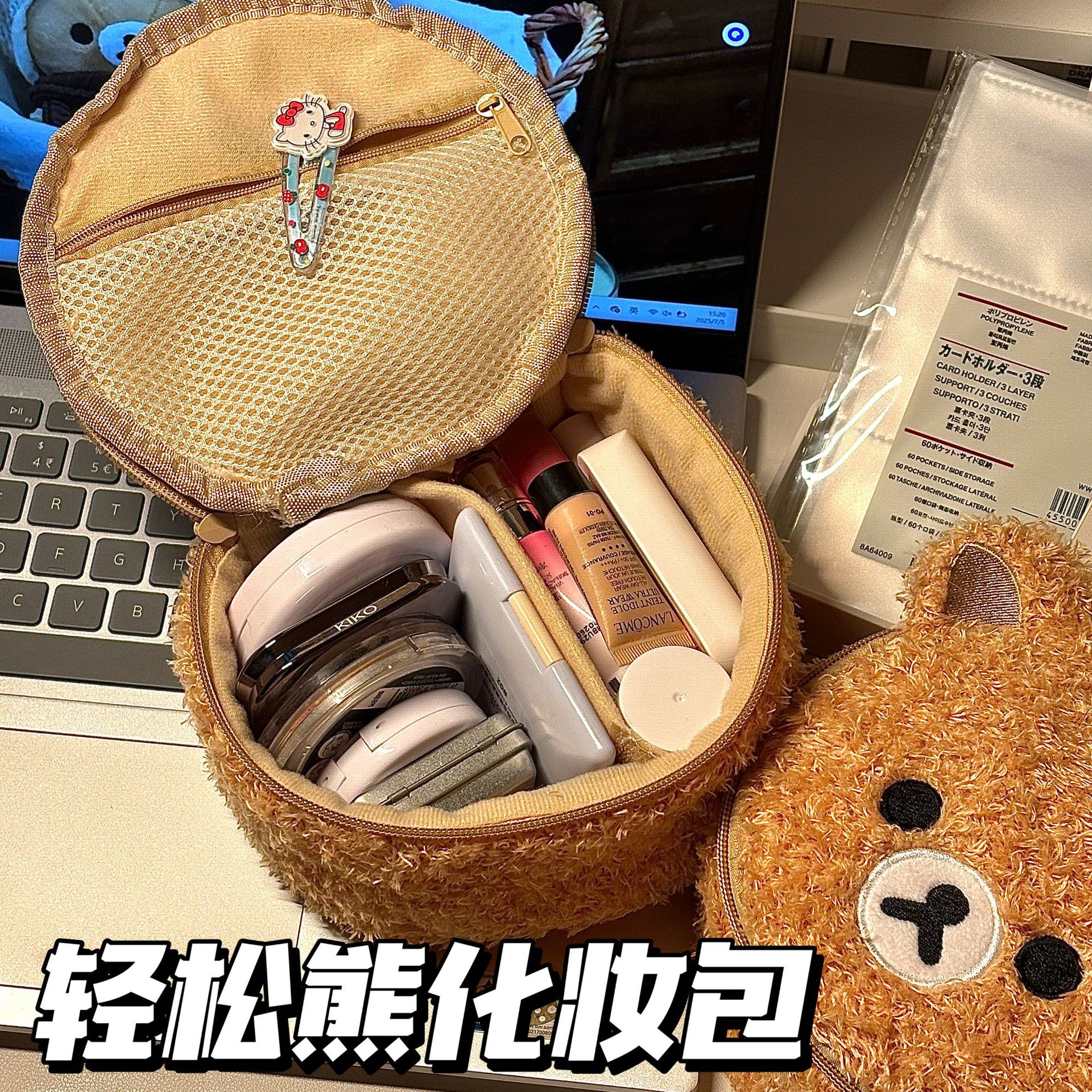 만화 귀여운 래빗 벨벳 리락쿠마 헤드 타원형 입체 화장품 가방 휴대용 수납 세면도구 가방 대용량스토어 가기