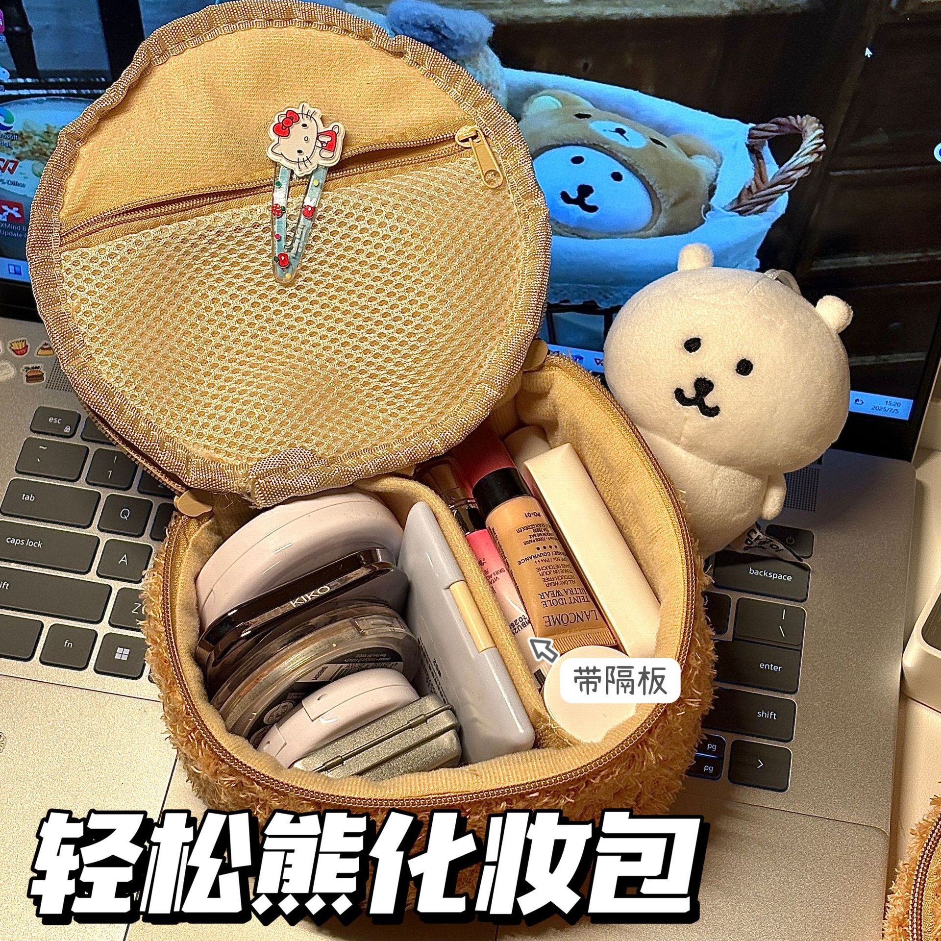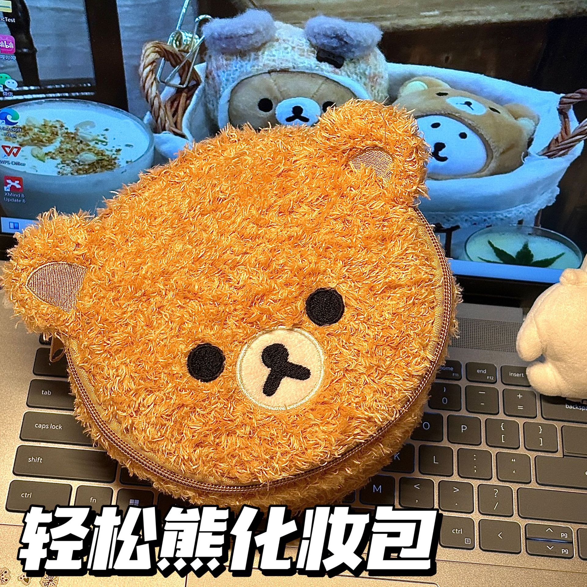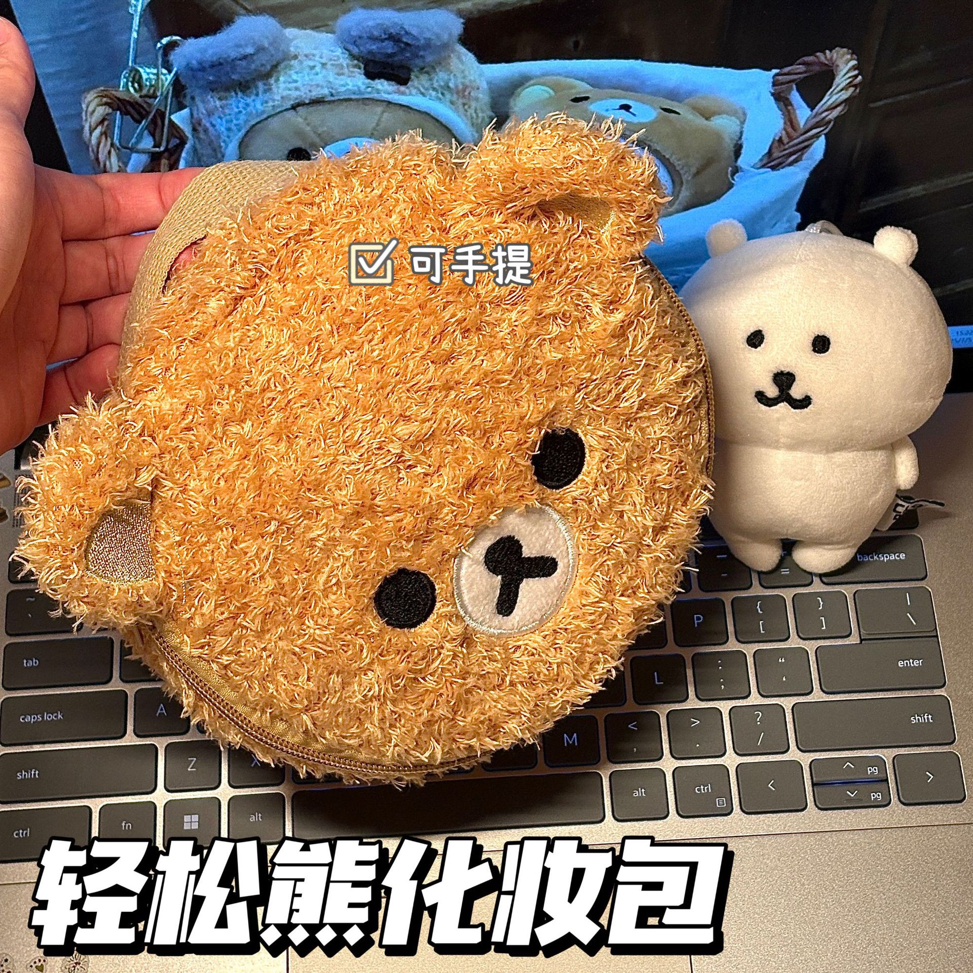 만화 귀여운 래빗 벨벳 리락쿠마 헤드 타원형 입체 화장품 가방 휴대용 수납 세면도구 가방 대용량스토어 가기