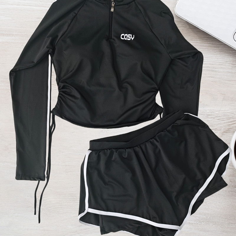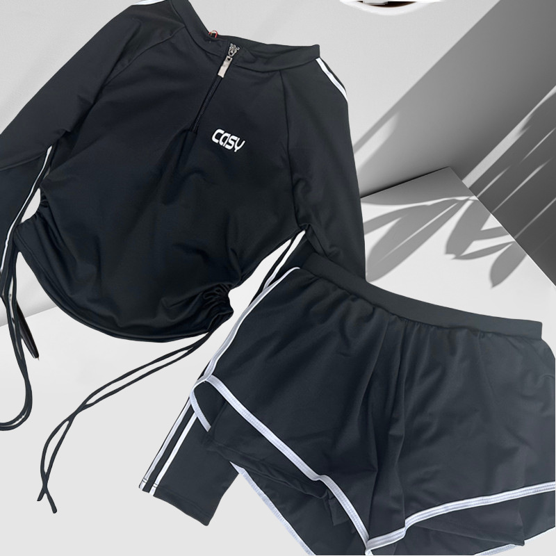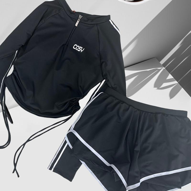 2025년 신형 스포츠 스플릿 수영복 소녀 온천 리조트 해변 수영 여성 보수적인 배 커버 슬리밍 투피스 세트