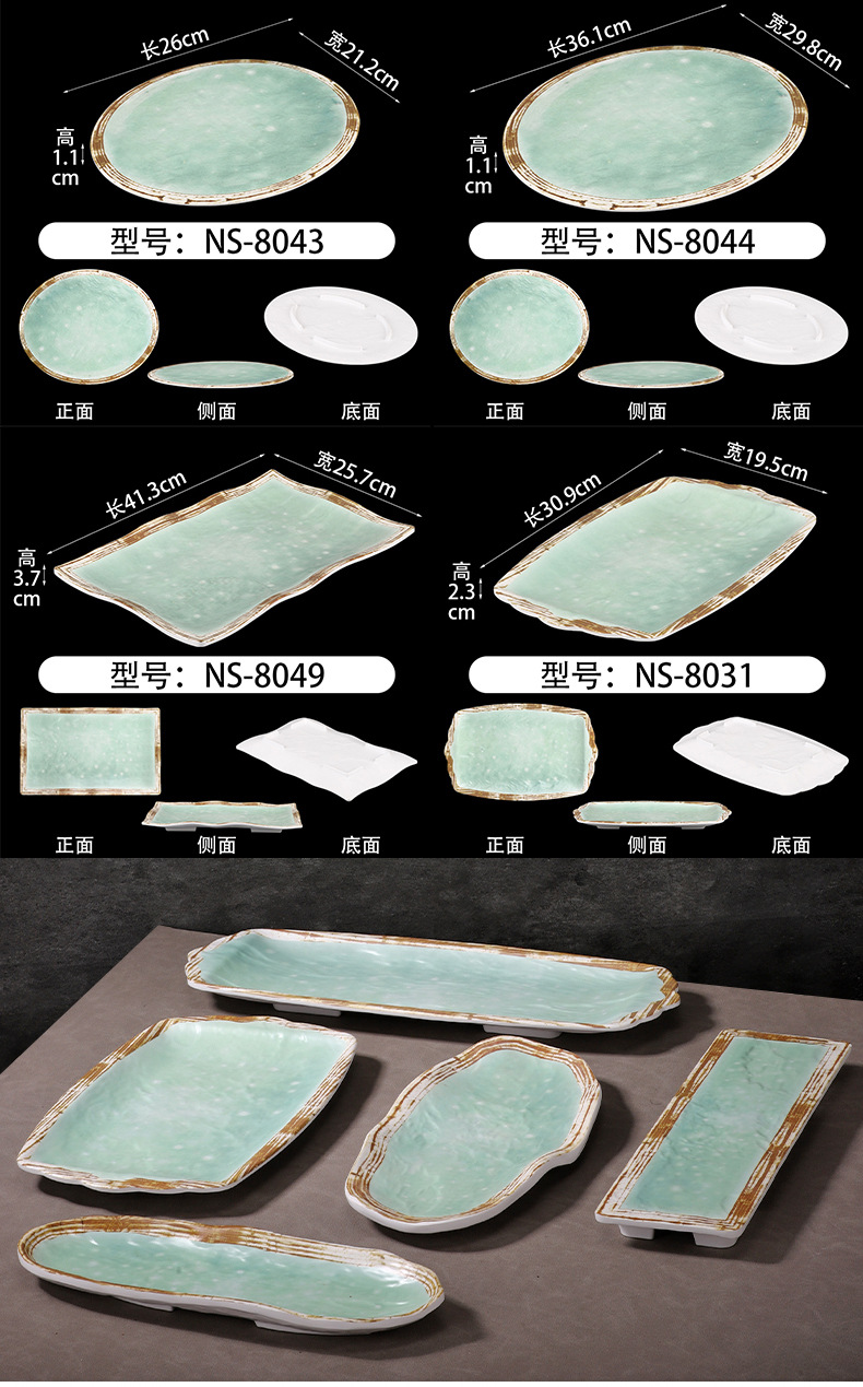 멜라민 스시 접시 한국식 바베큐 식기 일본 식기 상업용 전골 식당 접시 직사각형 바베큐 플랫 플레이트스토어 가기