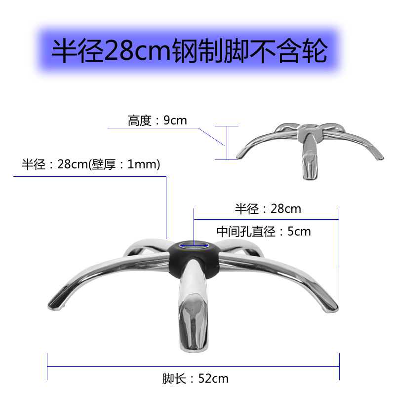 의자 발 회전 의자 액세서리 두꺼운 의자 발 섀시 전기 도금 5성 삼각대 컴퓨터 의자 베이스 스틸 5성