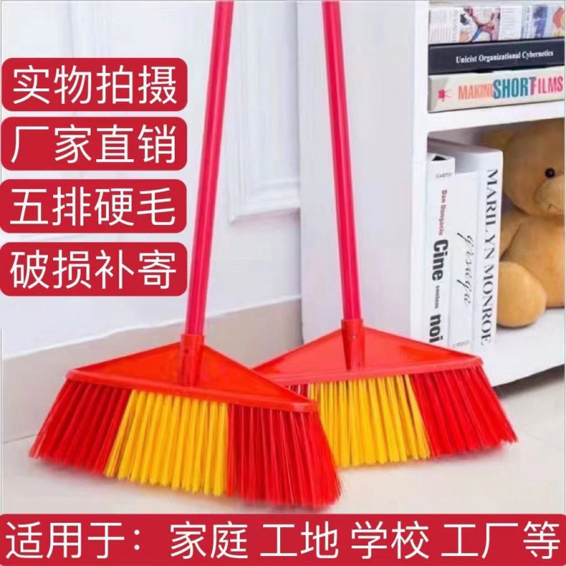 두껍고 내구성이 뛰어난 빗자루, 5줄의 단단한 강모 플라스틱, 고품질 도매 가정용 위생 빗자루, 청소용 빗자루, 단일스토어 가기