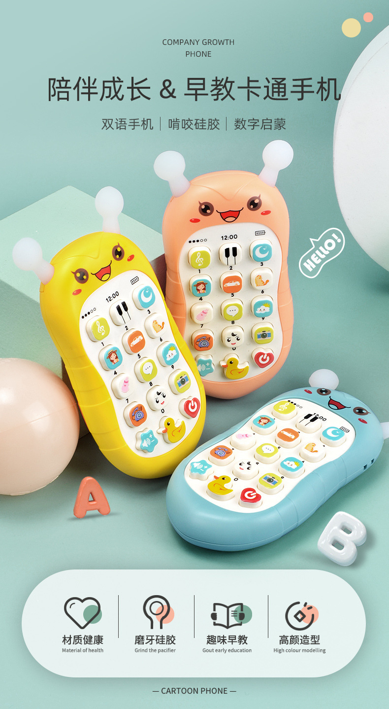 씹을 수있는 치발기 아기 음악 장난감 휴대 전화 이야기 학습 기계 아기 조기 교육 전화 장난감 도매