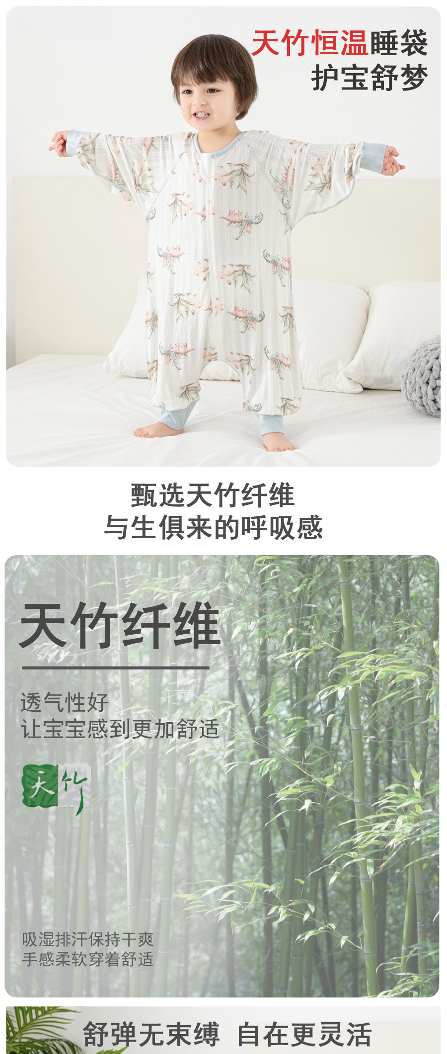 아기 침낭 여름 대나무 일정한 온도 분할 다리 잠옷 안티 킥 어린이 점프 슈트 아기 여름 일정한 온도 침낭스토어 가기