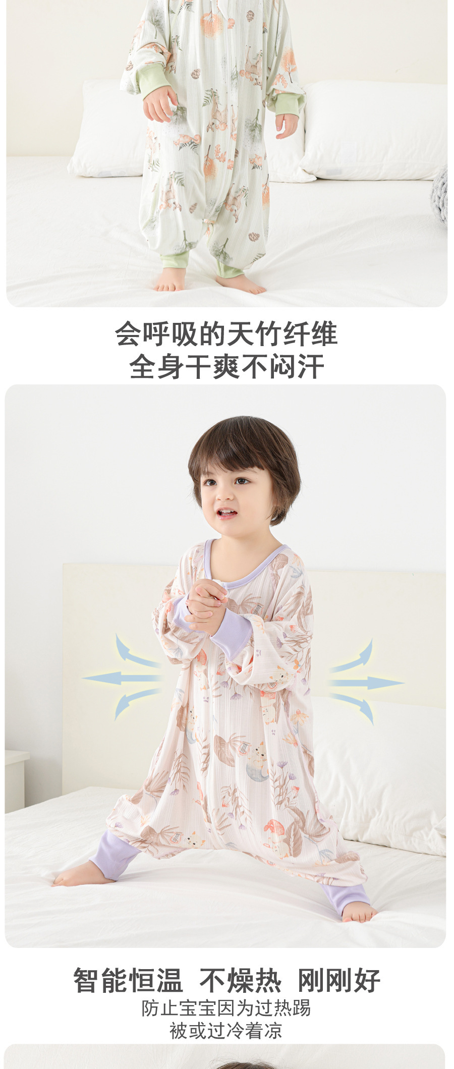 아기 침낭 여름 대나무 일정한 온도 분할 다리 잠옷 안티 킥 어린이 점프 슈트 아기 여름 일정한 온도 침낭