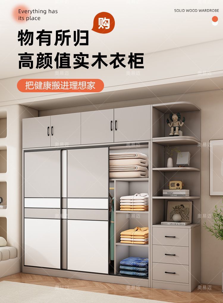 슬라이딩 도어 옷장 홈 침실 나무 어린이 보관 캐비닛 작은 아파트 임대 간단한 조립 옷장스토어 가기