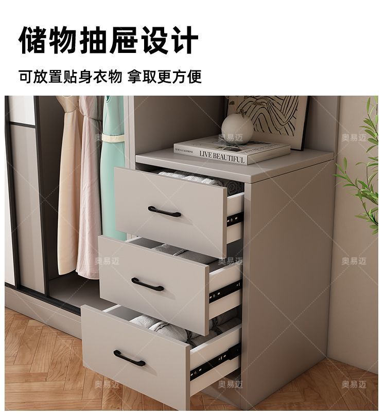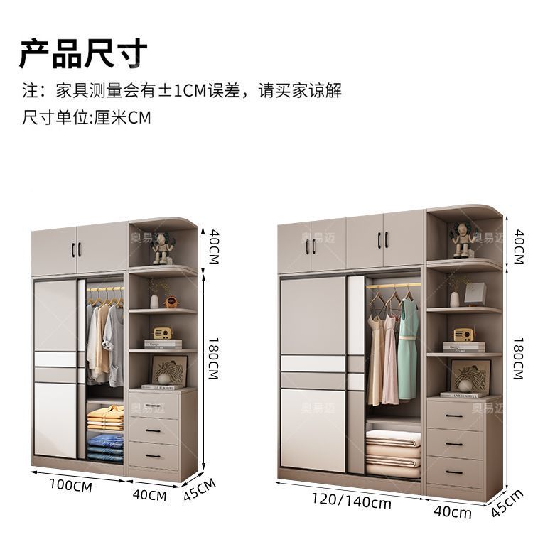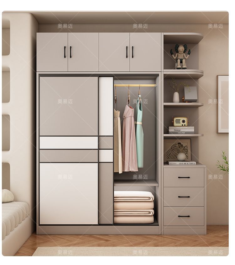 슬라이딩 도어 옷장 홈 침실 나무 어린이 보관 캐비닛 작은 아파트 임대 간단한 조립 옷장