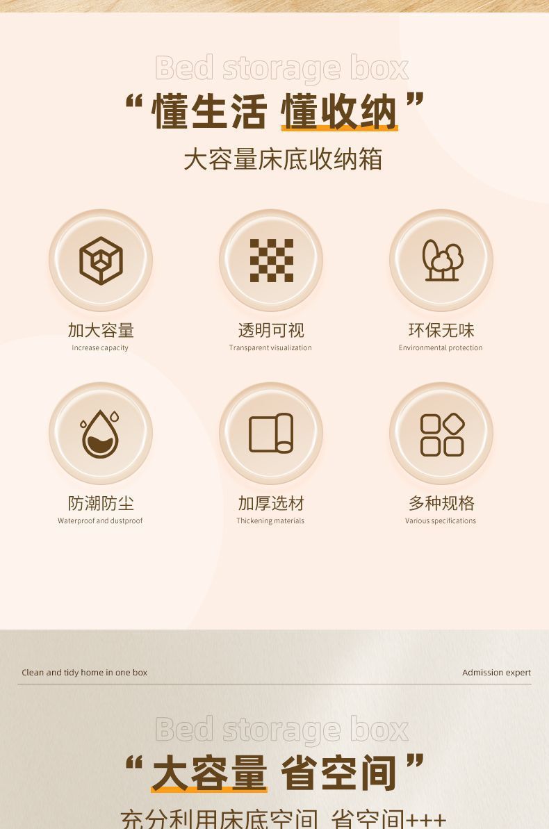 침대 밑 수납함 가정용 투명 평면 서랍형 옷과 이불 정리함 침대 밑 접이식 수납함 수납함스토어 가기