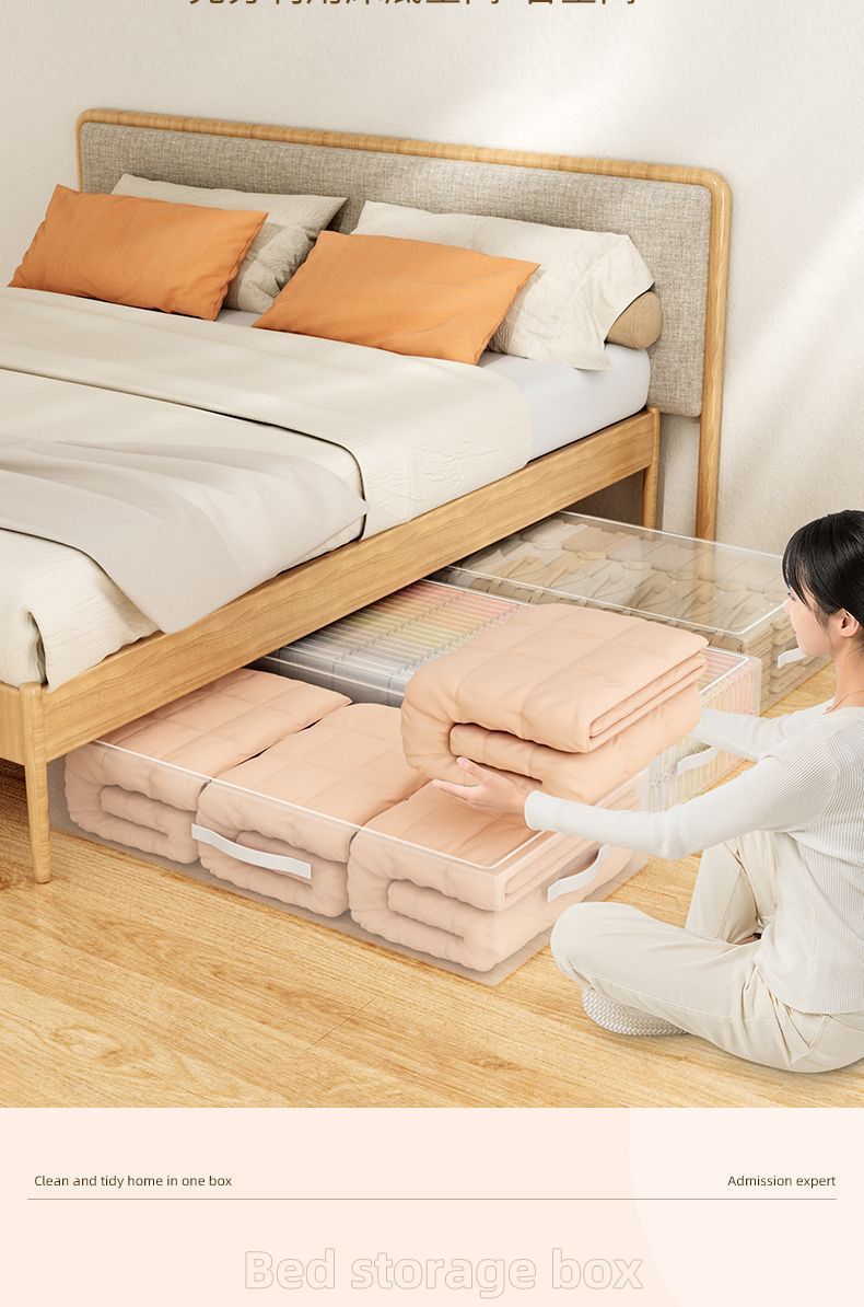 침대 밑 수납함 가정용 투명 평면 서랍형 옷과 이불 정리함 침대 밑 접이식 수납함 수납함