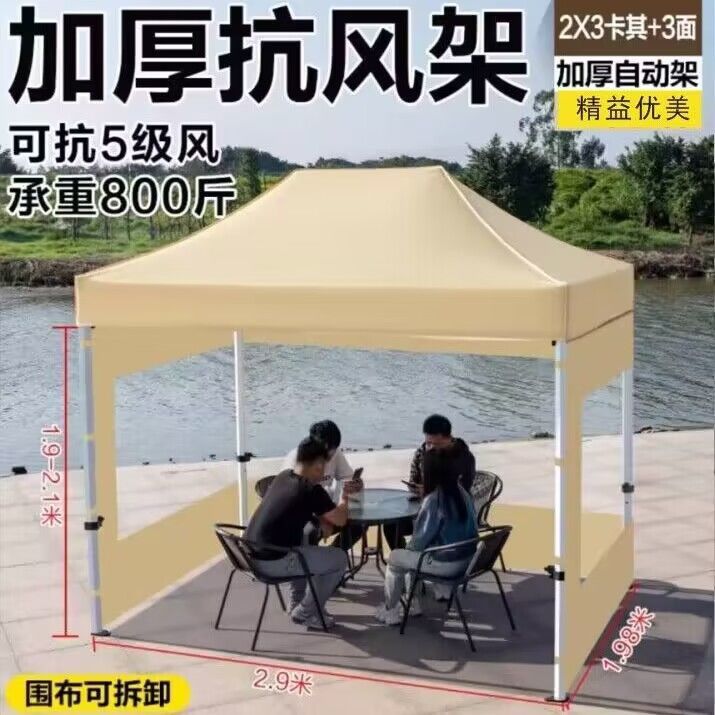 야외 캠핑용 고급형 4각 우산 텐트, 야외 카키색 대형 우산 차고 차고, 4각 차양스토어 가기