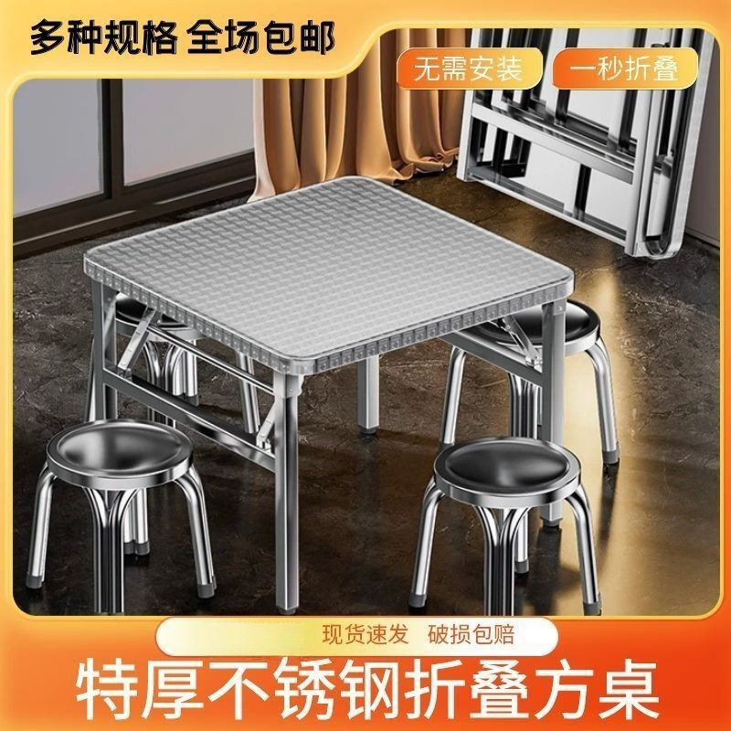 두꺼운 스테인레스 스틸 접이식 테이블, 휴대용 바베큐 테이블, 야외 노점 야시장 간단한 식탁, 둥근 모서리 작은 사각형 테이블