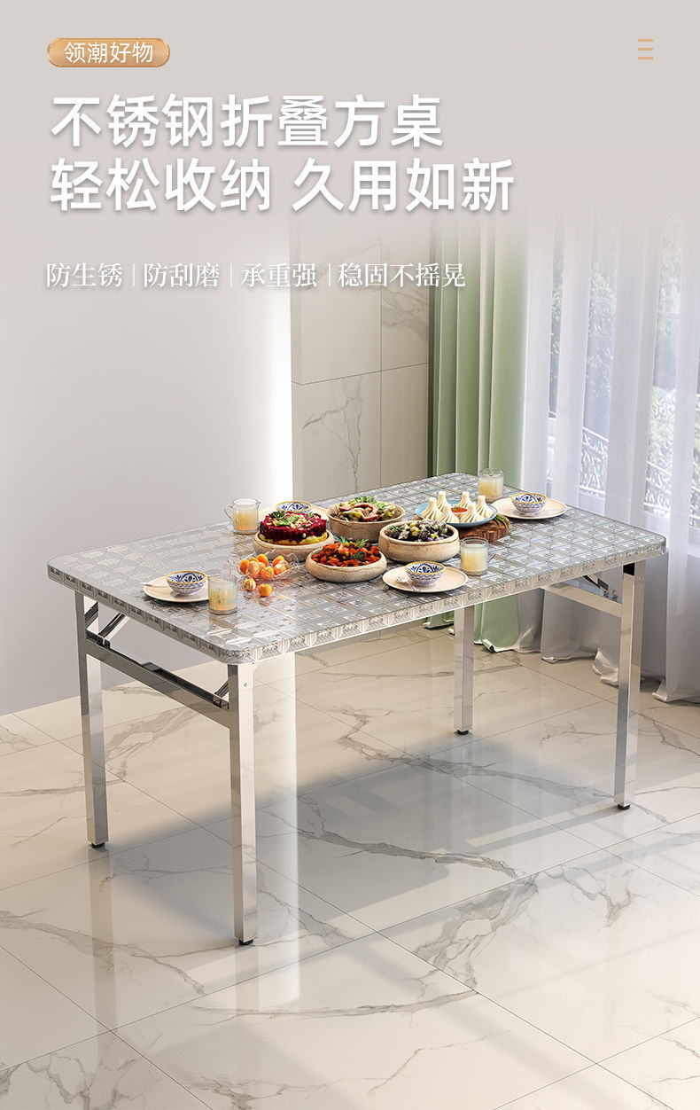 두꺼운 스테인레스 스틸 접이식 테이블, 휴대용 바베큐 테이블, 야외 노점 야시장 간단한 식탁, 둥근 모서리 작은 사각형 테이블스토어 가기