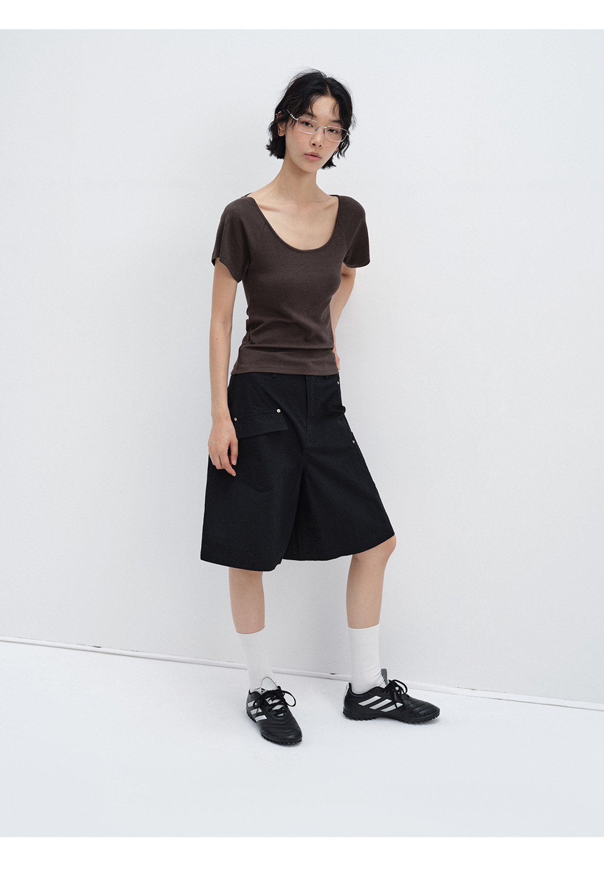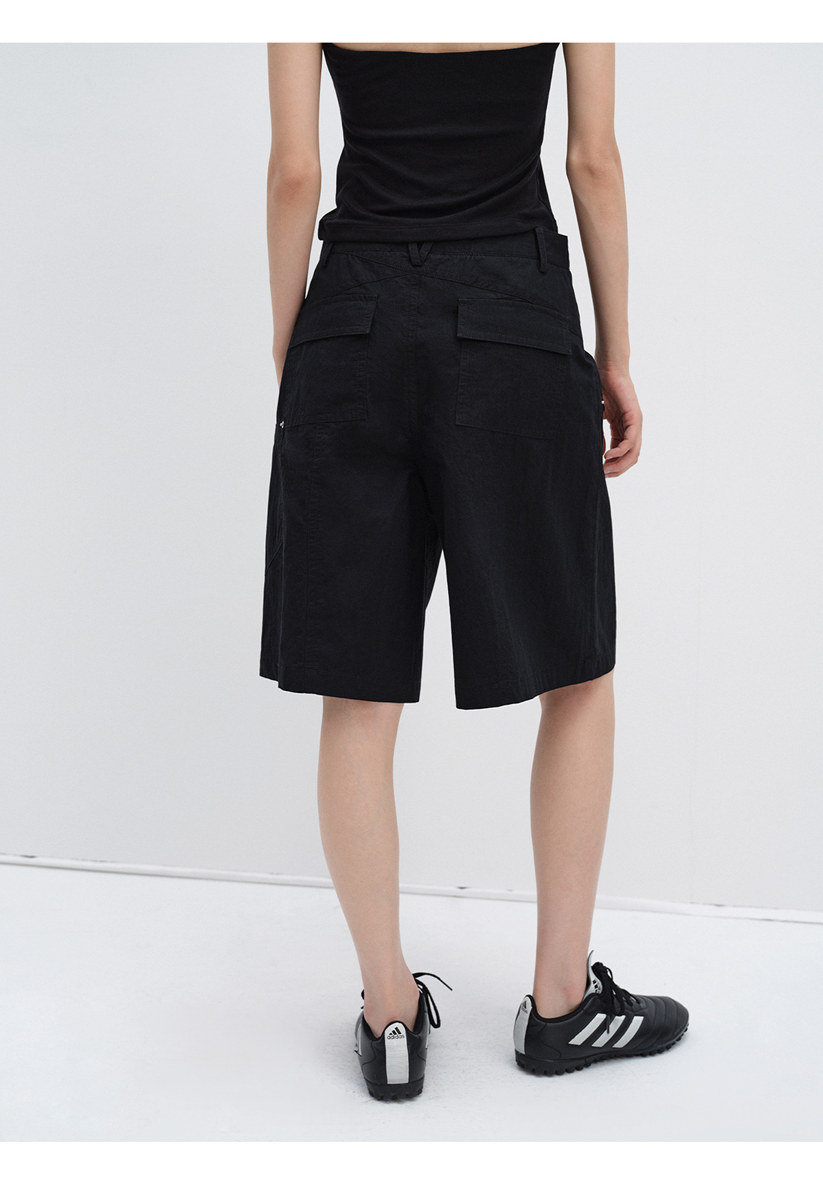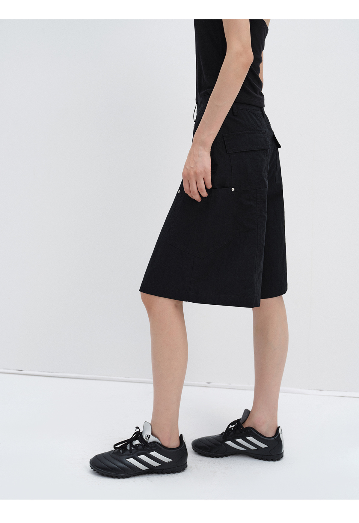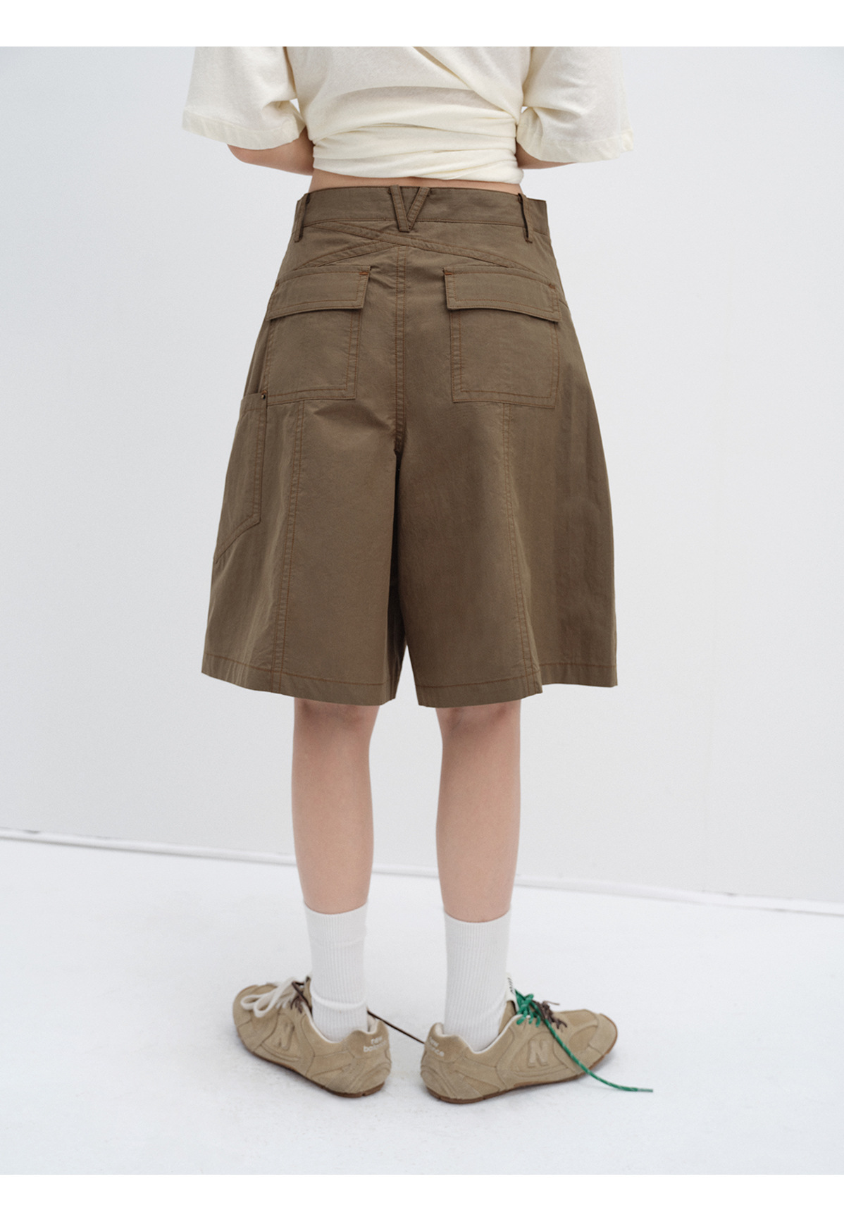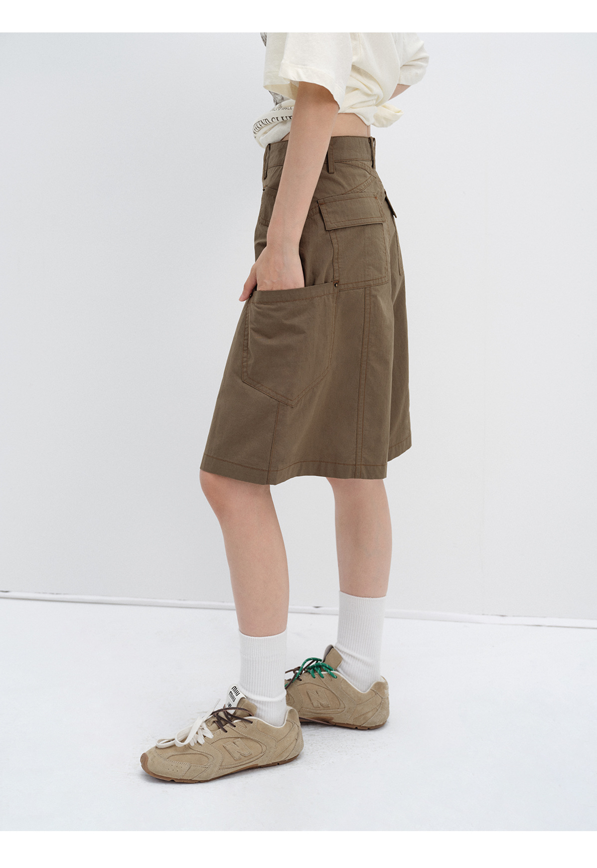 [시티] 신상 레트로 샌드워시 스터드 캐주얼 루즈한 다리 모양 수정 멀티 포켓 여성용 카고반바지 V8899