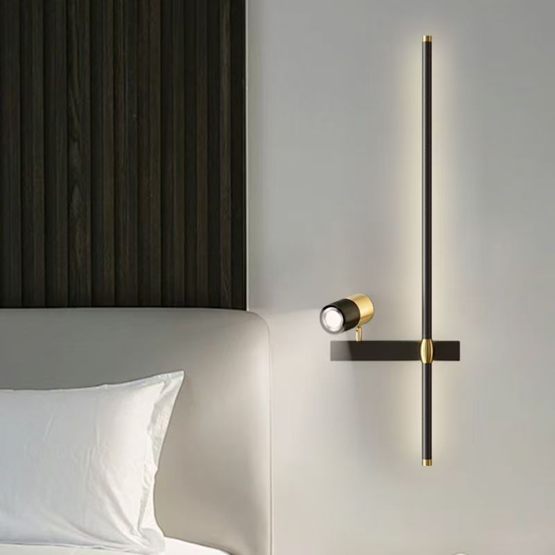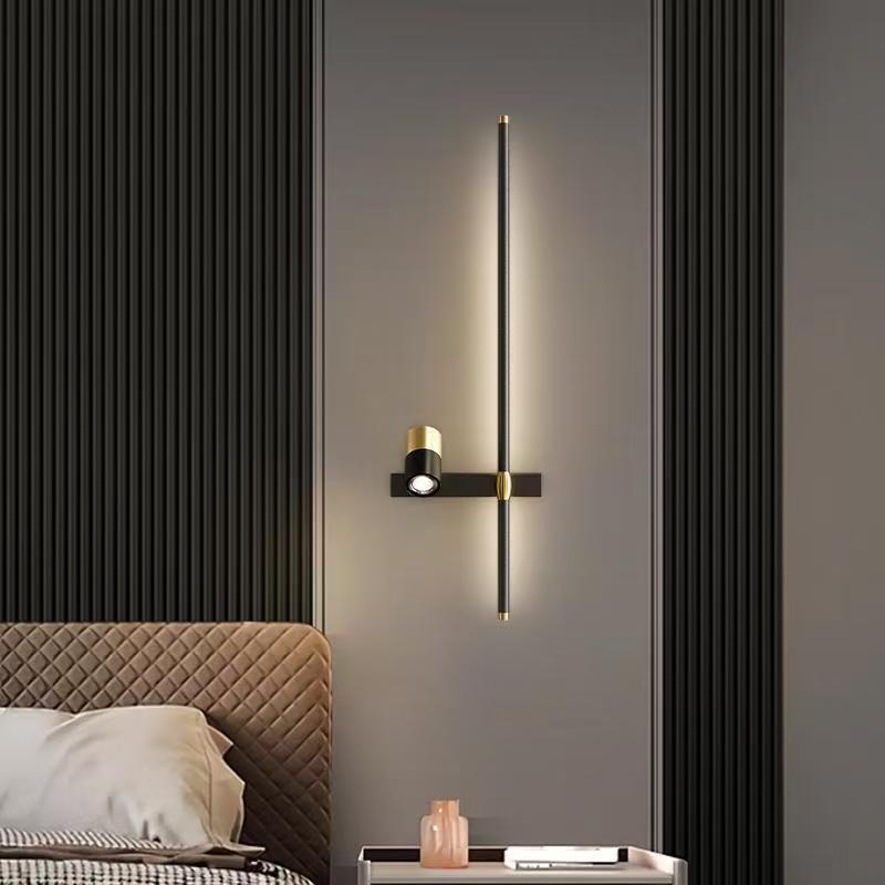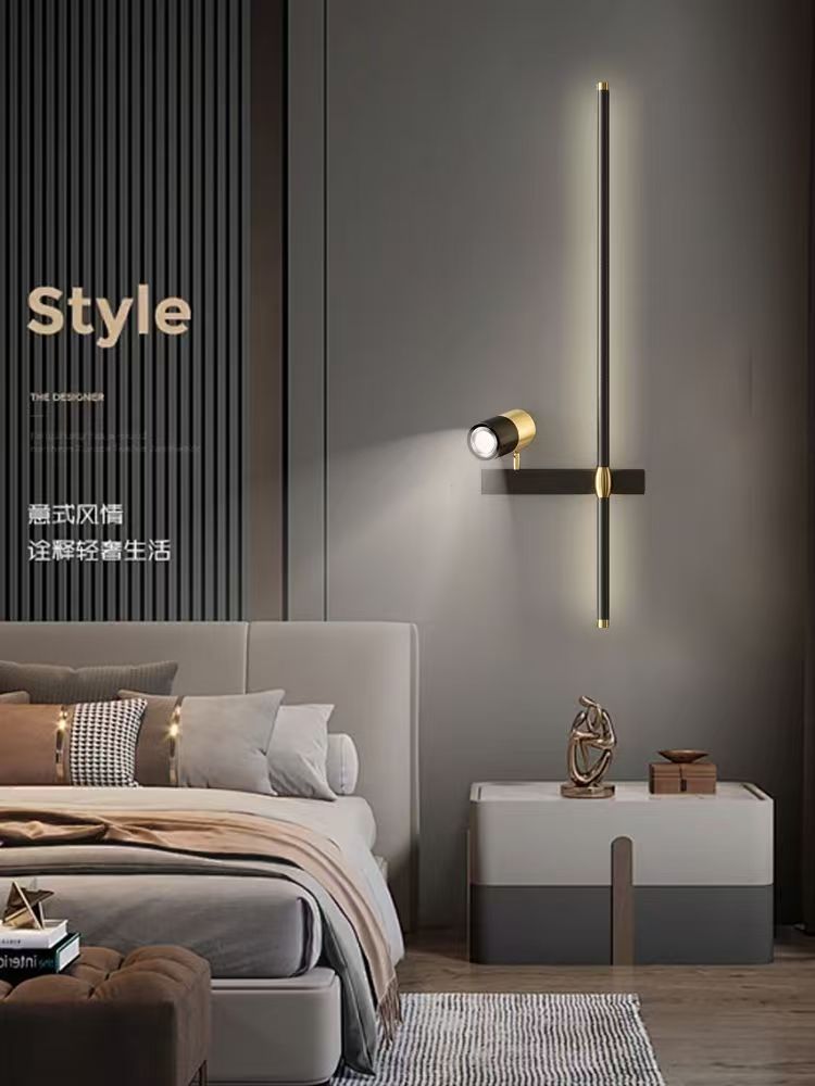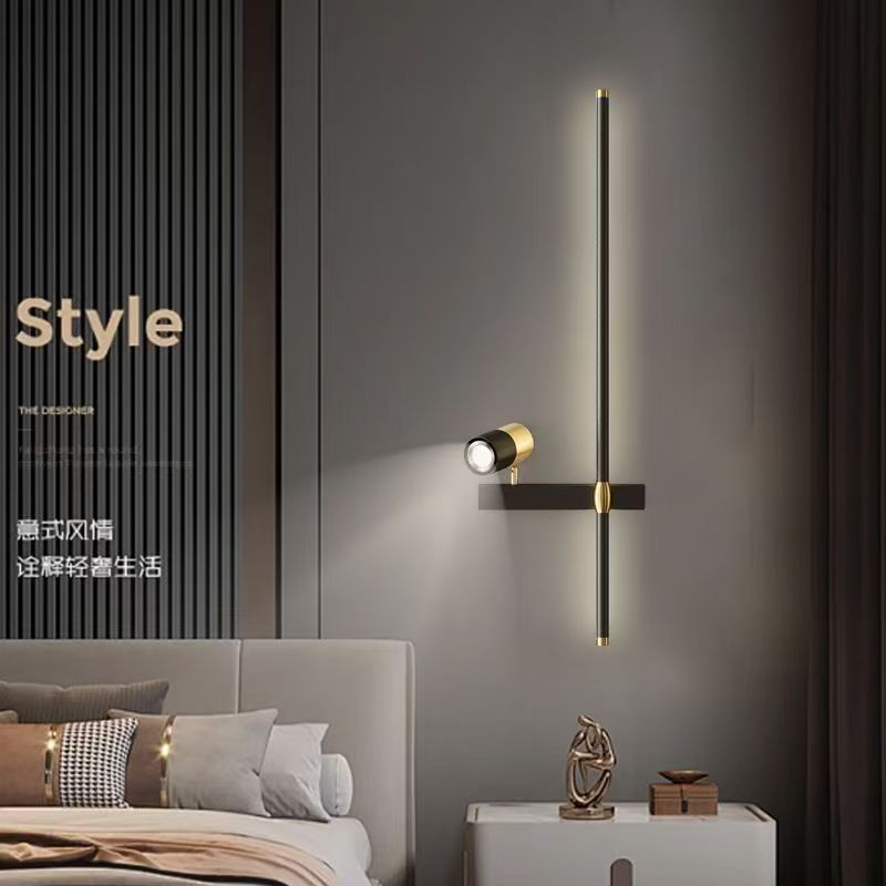 미니멀리스트 긴 벽 램프 현대적인 미니멀리스트 거실 그릴 배경 벽 램프 스포트라이트 스위치 침대 옆 램프 크로스 보더 램프