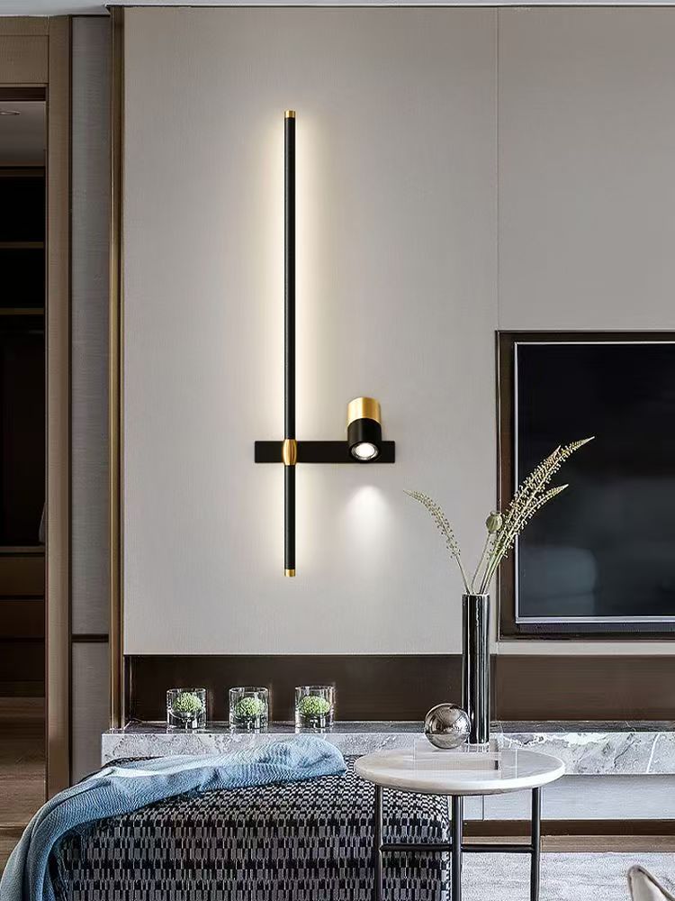 미니멀리스트 긴 벽 램프 현대적인 미니멀리스트 거실 그릴 배경 벽 램프 스포트라이트 스위치 침대 옆 램프 크로스 보더 램프스토어 가기