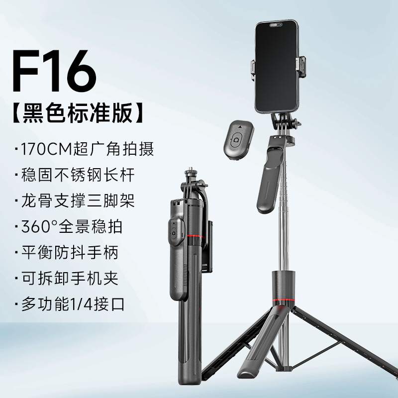 • F16 [블랙-스탠다드 에디션] 1.7m 스테인레스 스틸 샤프트*밸런스 핸들*1/4 인터페이스*분리형 휴대폰 클립*블루투스 리모컨