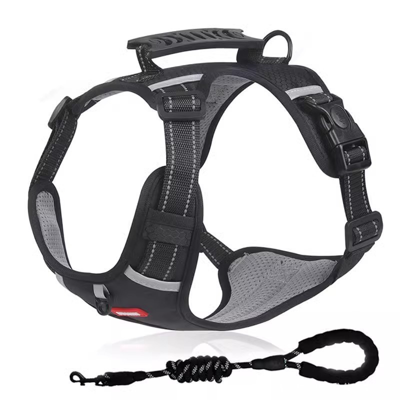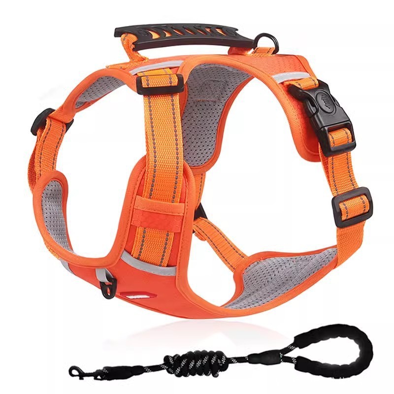 개 산책용 가죽끈, 여름 통기성 개 목줄, 대형견 방폭형 개 하네스, 조절 가능한 가슴끈