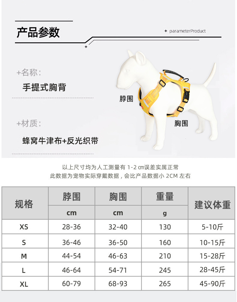 • 노란색 가슴과 등 + 1.5m 반사 원형 로프