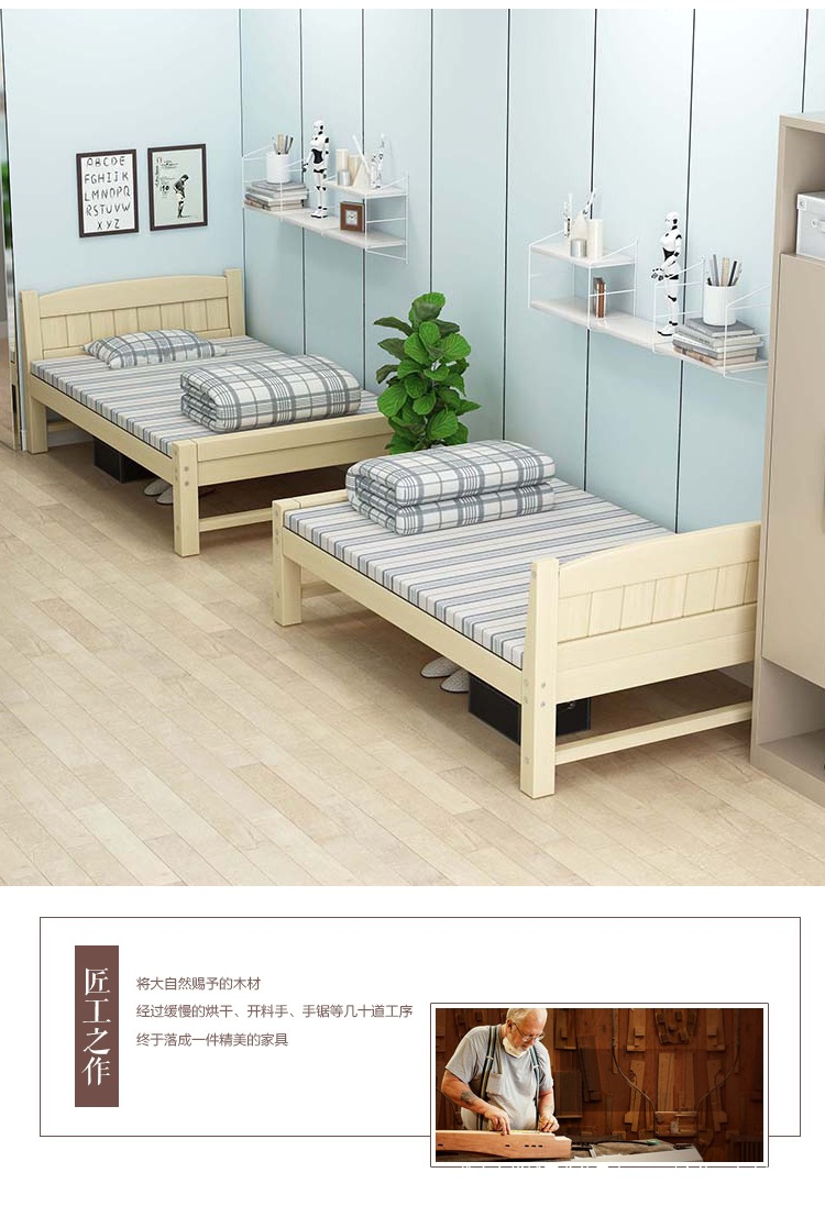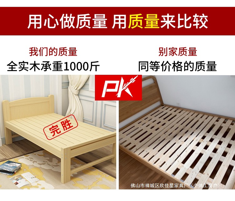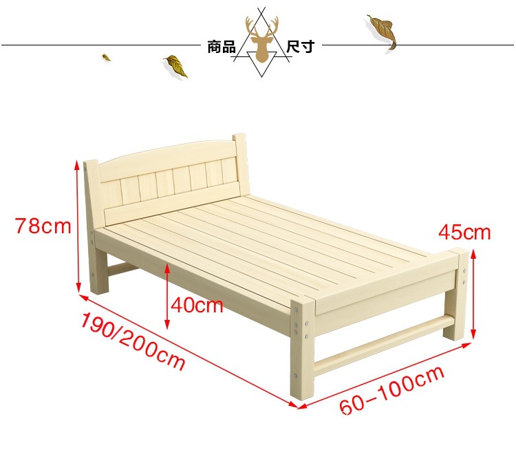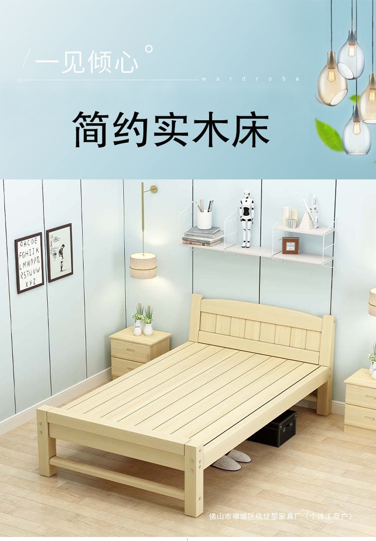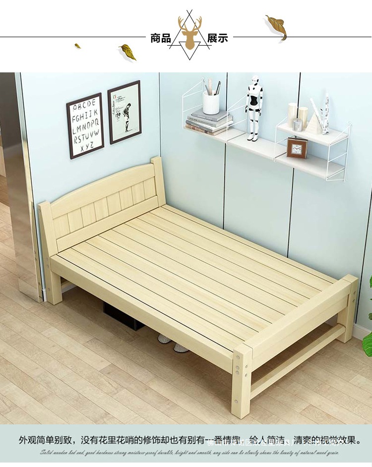 경제적인 원목 침대 1.5m 소나무 더블 모던 심플 1.2m 임대실 싱글 침대 90cm 폭 침대 프레임스토어 가기