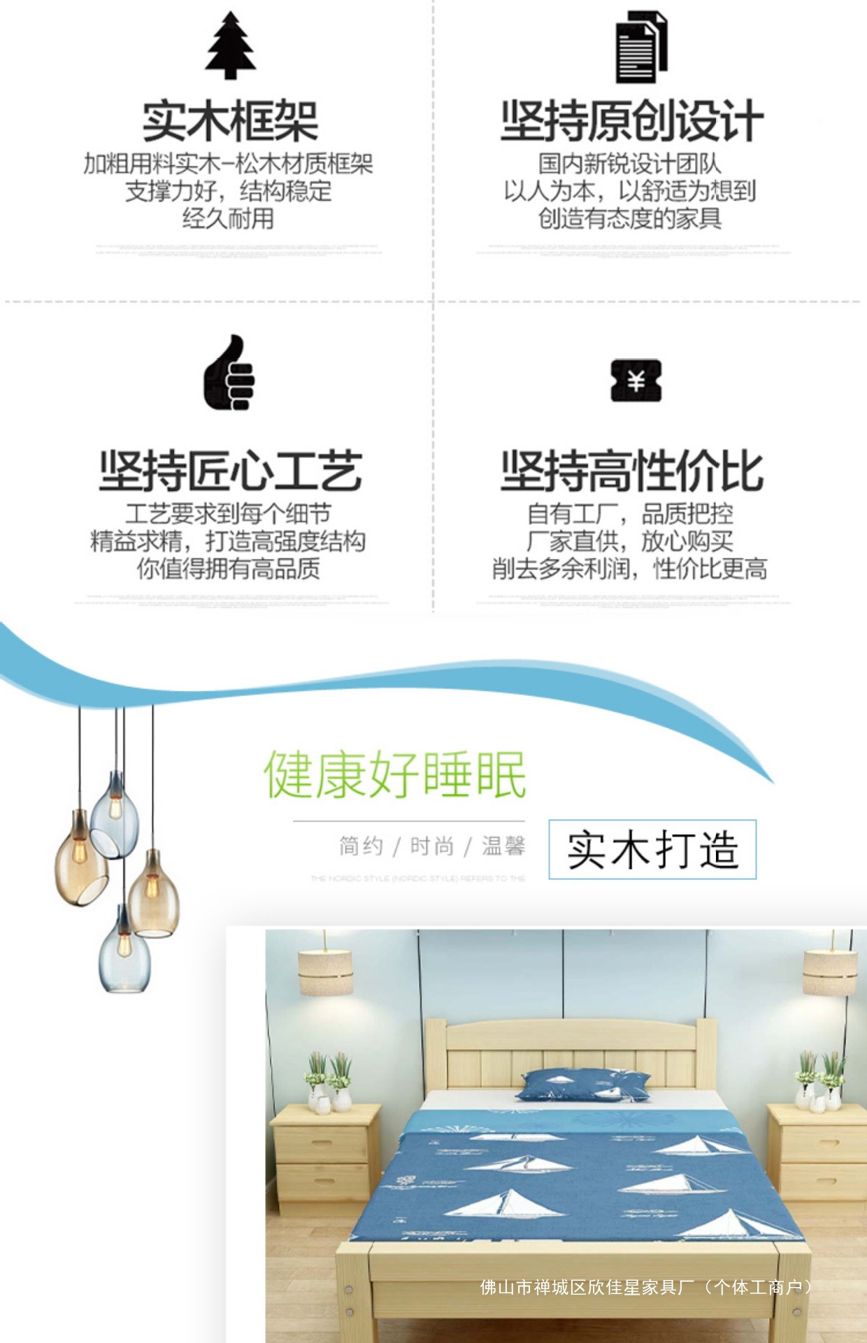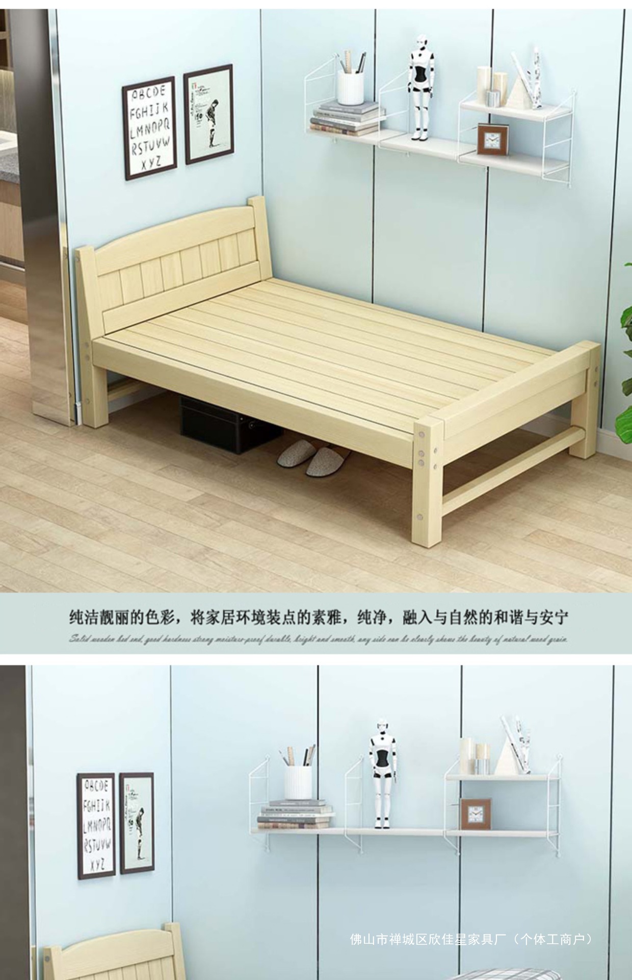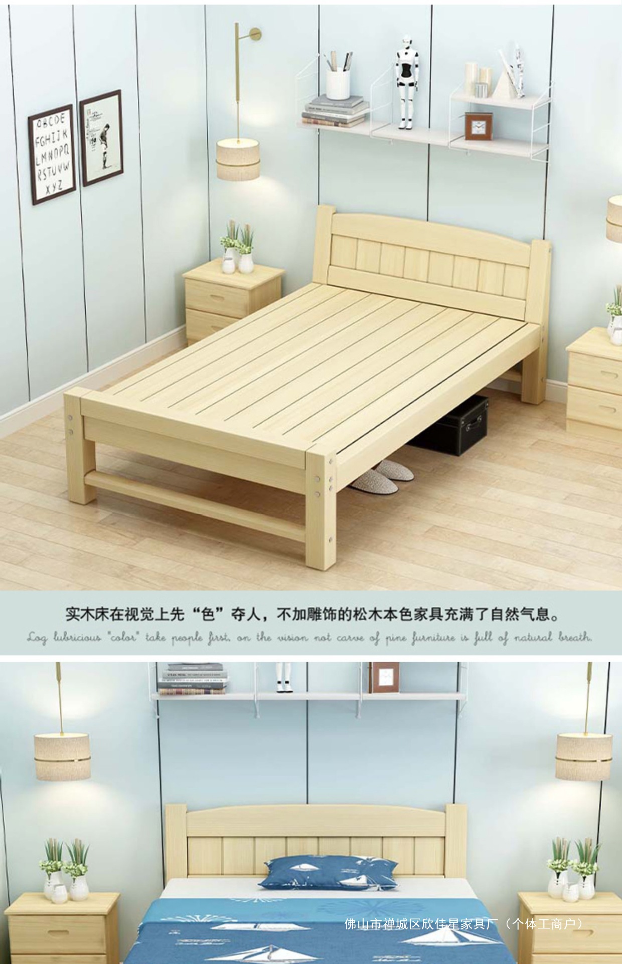 경제적인 원목 침대 1.5m 소나무 더블 모던 심플 1.2m 임대실 싱글 침대 90cm 폭 침대 프레임스토어 가기