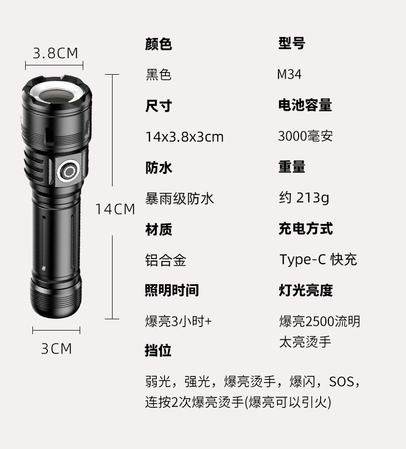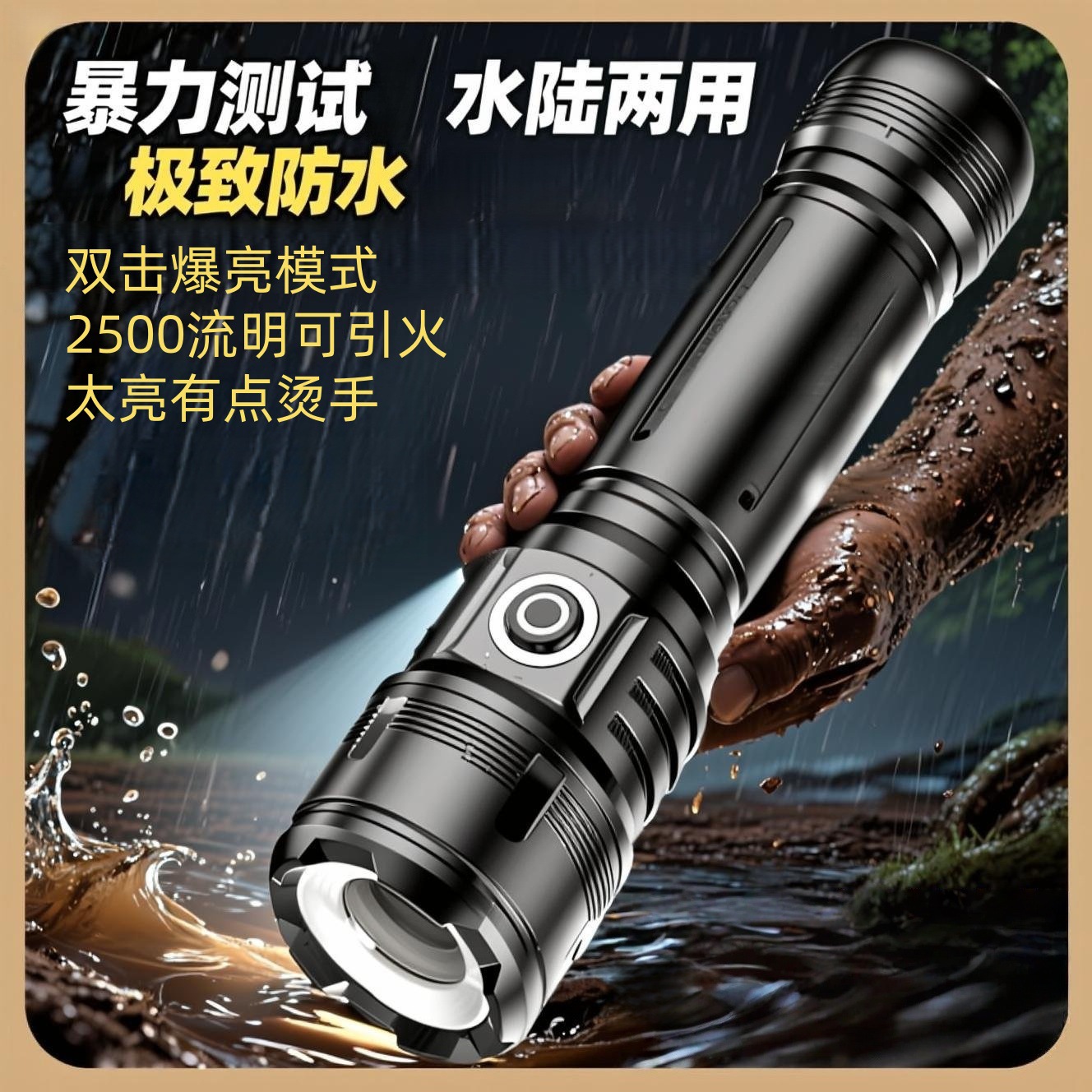 알루미늄 합금 다기능 전술 고휘도 장거리 휴대용 줌 손전등 야외 충전식 강한 빛 손전등스토어 가기