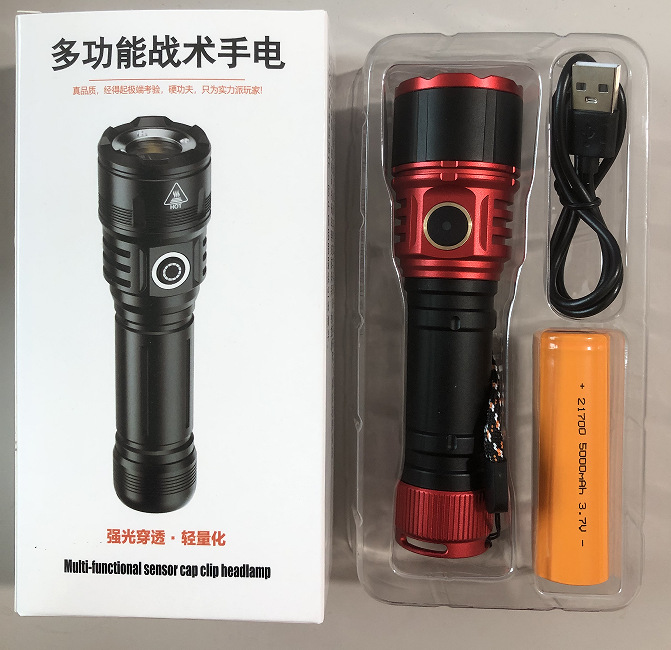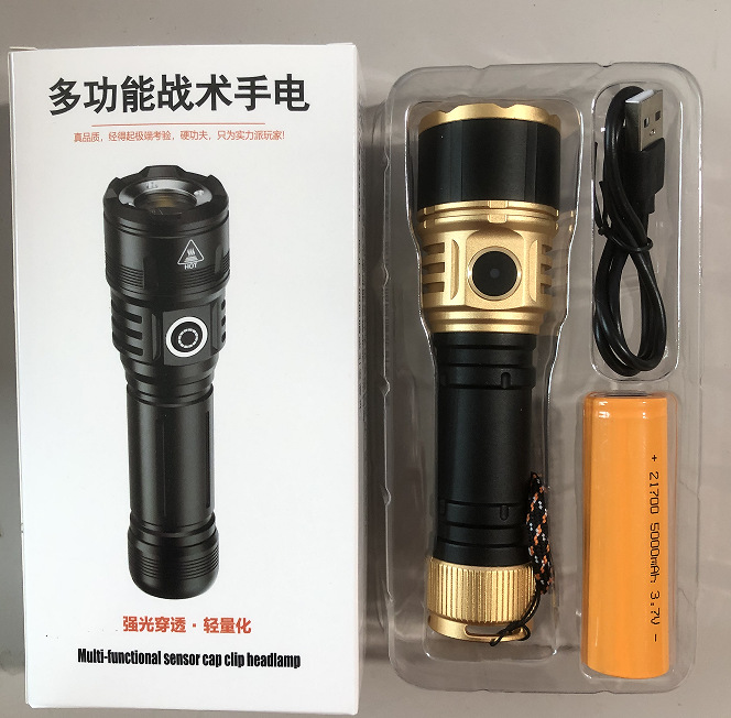 알루미늄 합금 다기능 전술 고휘도 장거리 휴대용 줌 손전등 야외 충전식 강한 빛 손전등