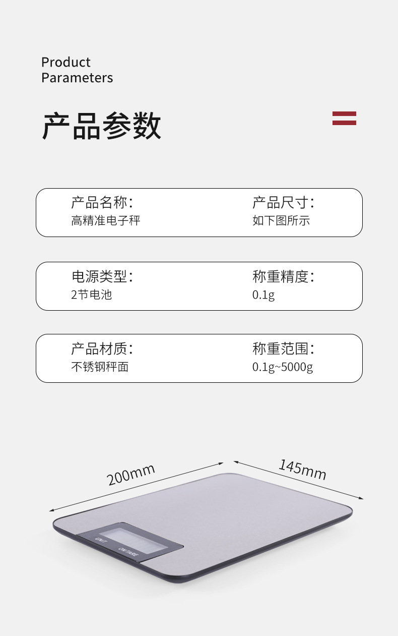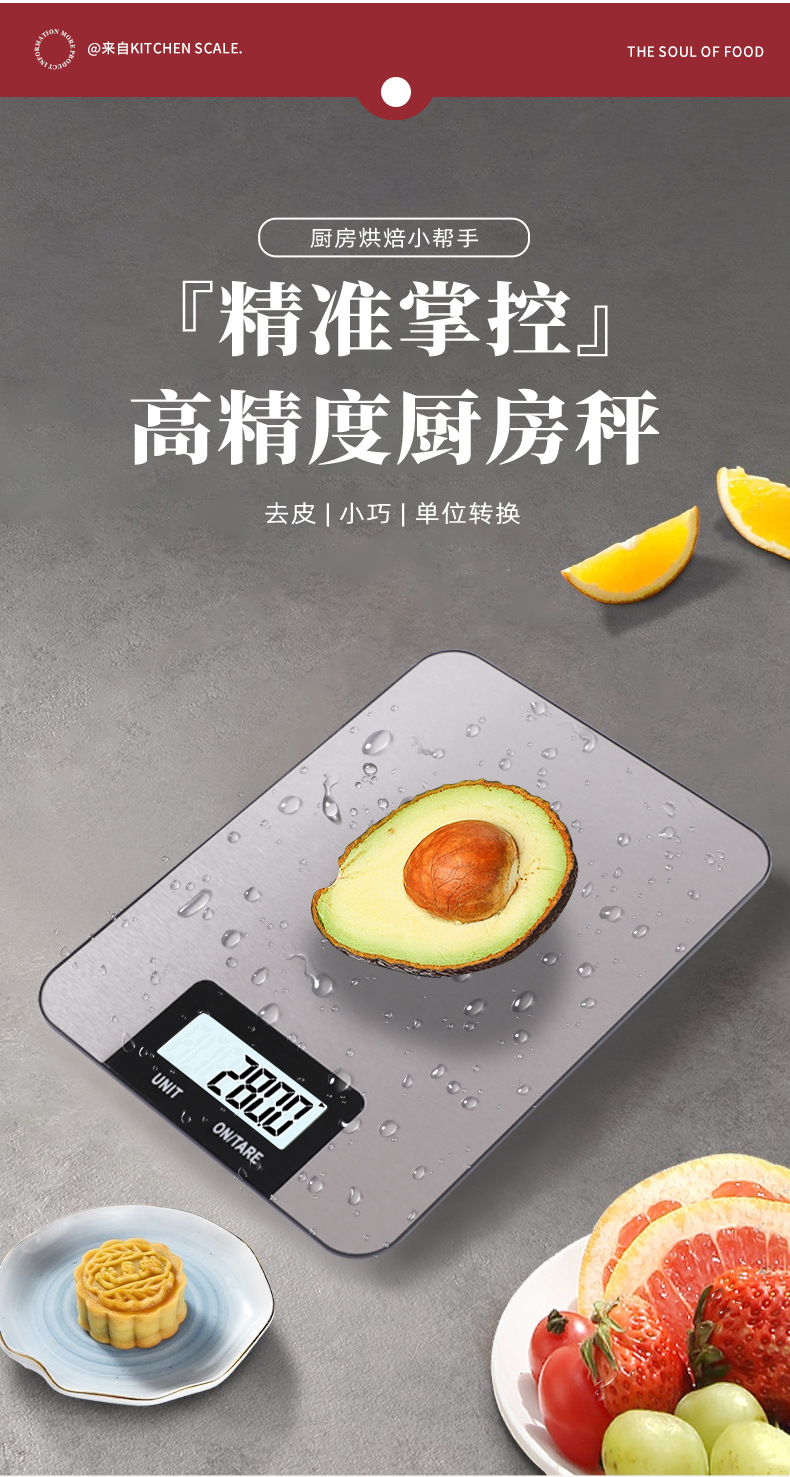 국경 간 초박형 스테인레스 스틸 주방 저울, 고급스러운 가정용 베이킹 저울, 금 보석 정밀 그램 전자 저울