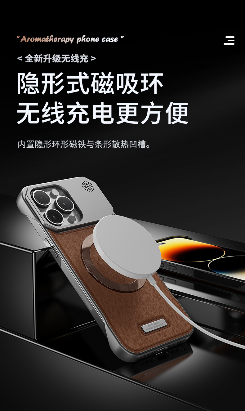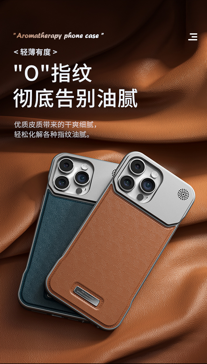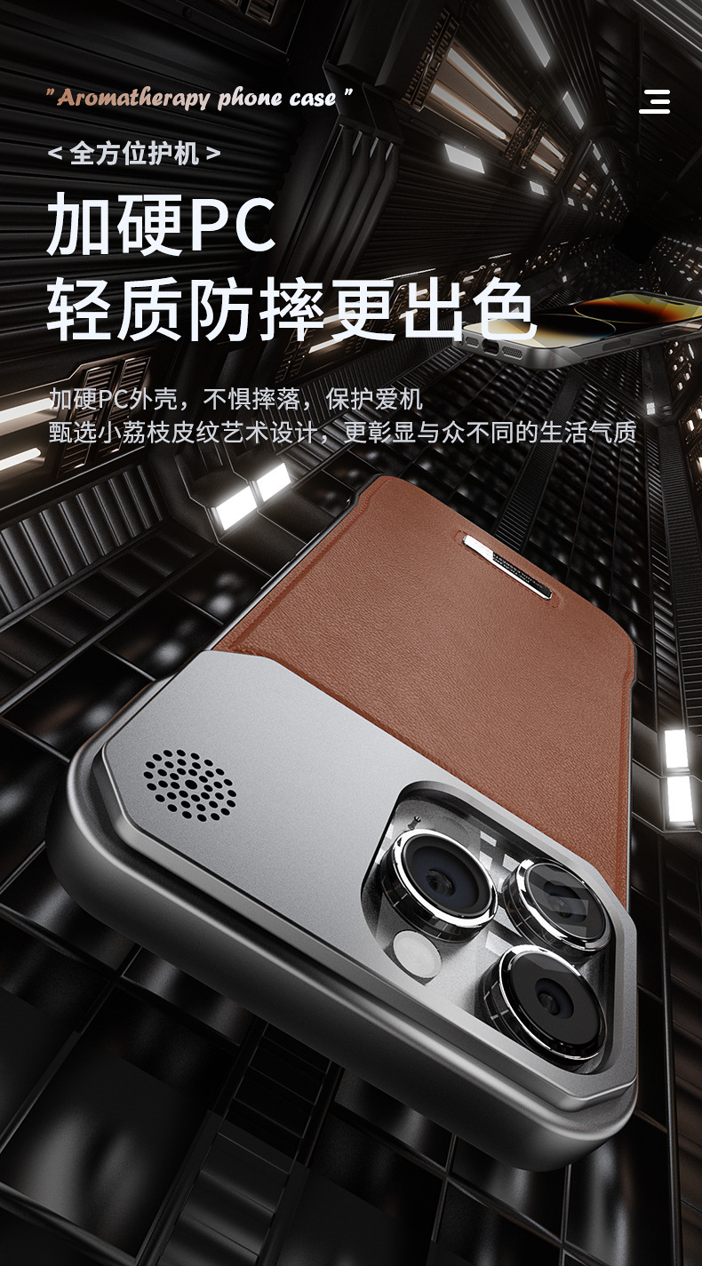 아이폰17프로맥스 가죽 아로마테라피 자석 휴대폰 케이스 애플16 메탈릭 페인트 프레임리스 보호 케이스