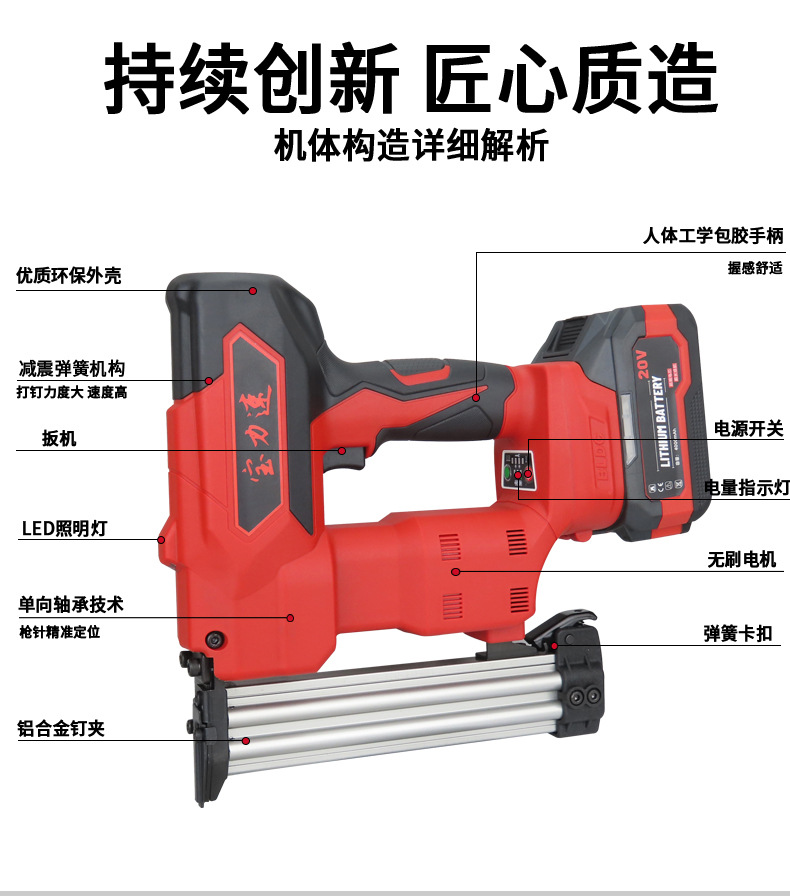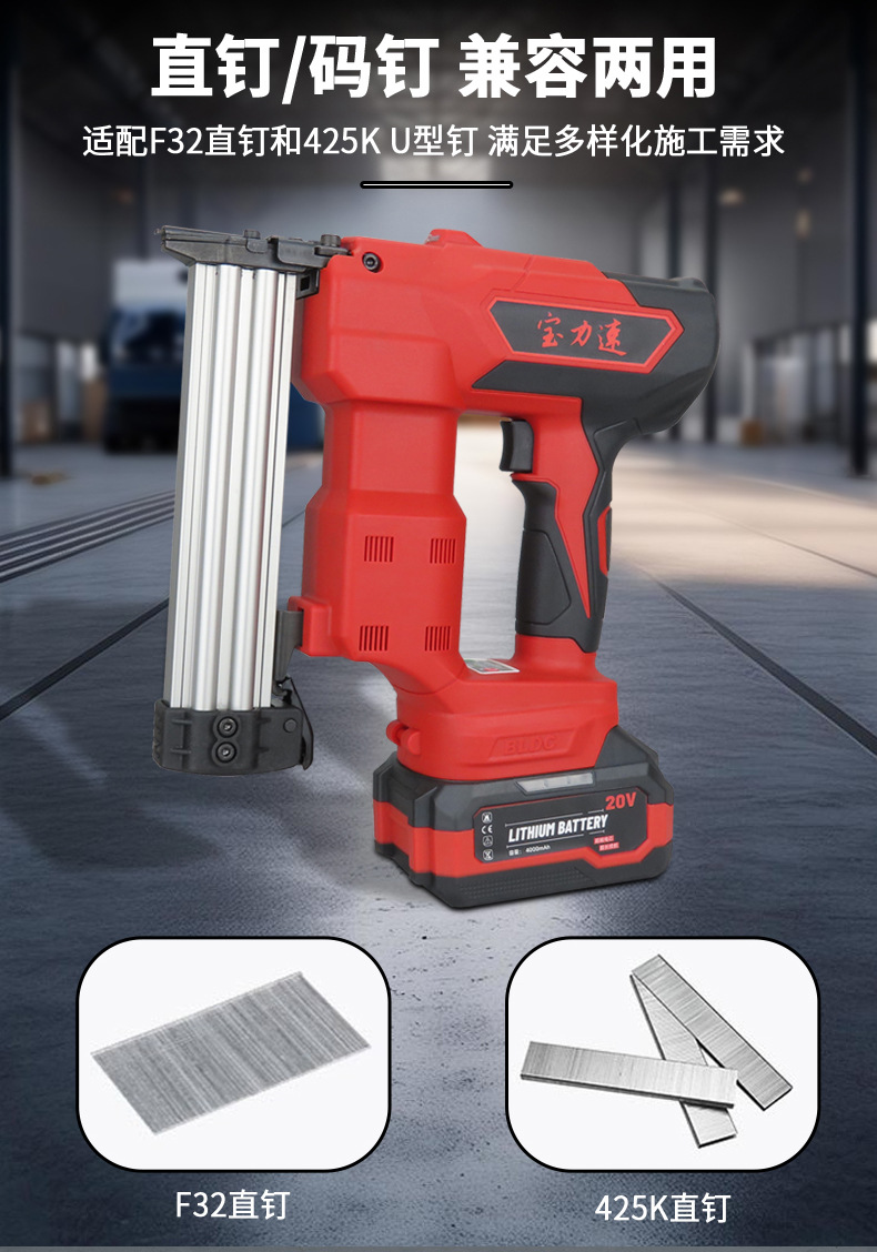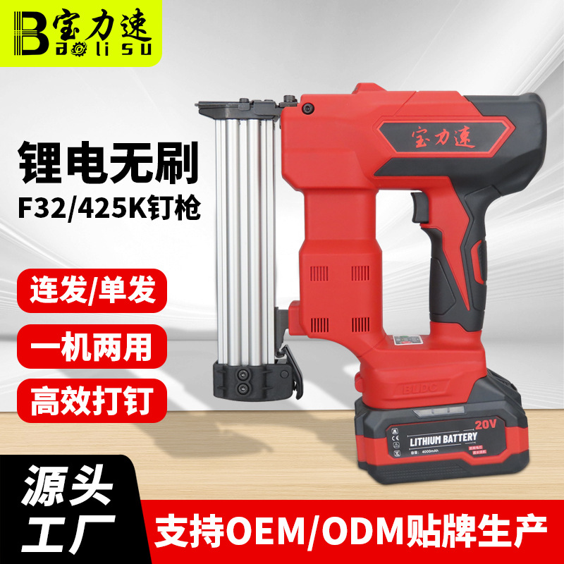 Baolisu 리튬 배터리 브러시리스 네일 건 F32 스트레이트 네일 건 425K 코드 네일 건 이중 목적 목공 네일 건 네일 건