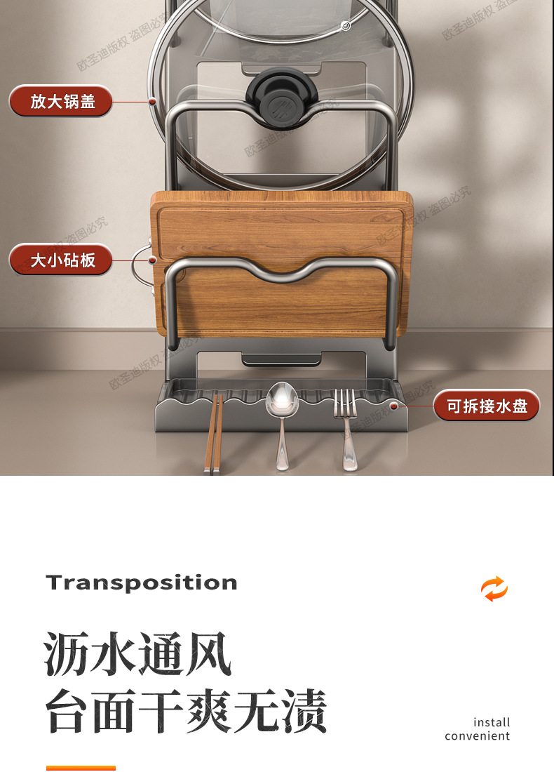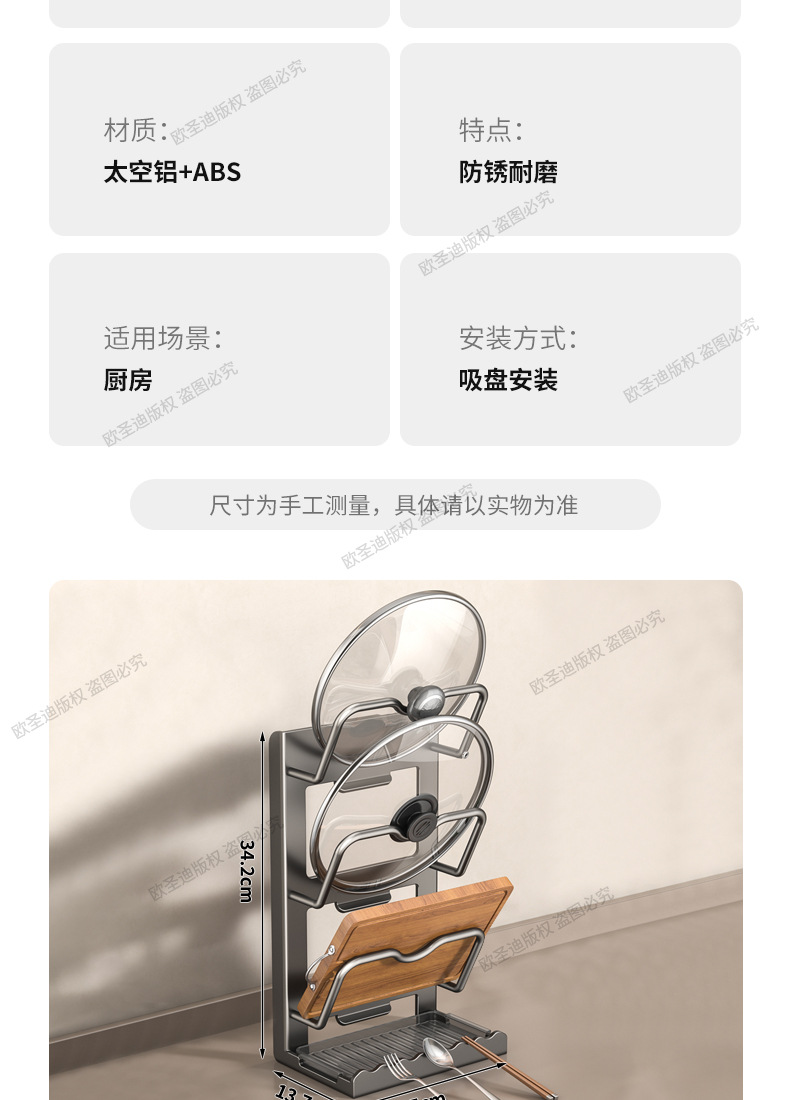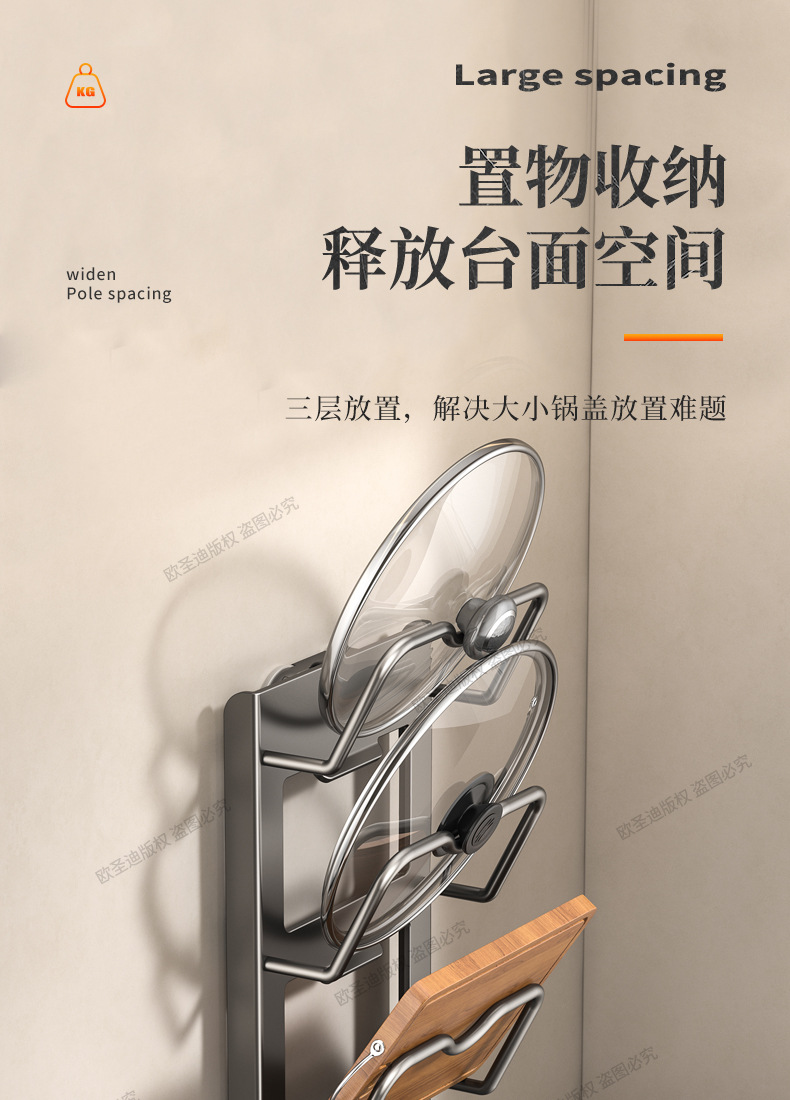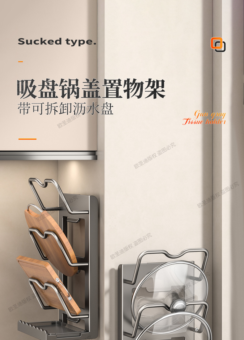 주방 수납 선반 다기능 냄비 뚜껑 랙 벽걸이 형 펀치없는 가정용 대형 도마 레이아웃 도마 보관