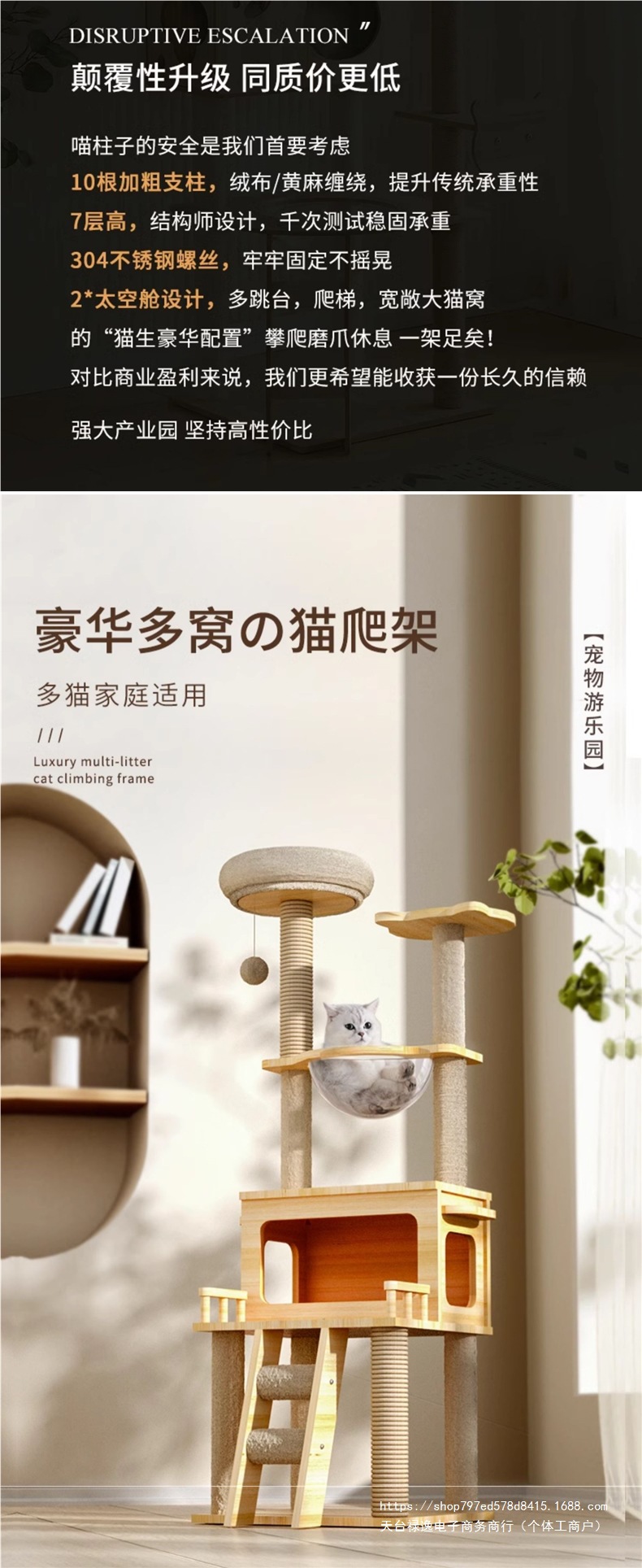 • [다섯 개의 우주 도시] 라피트급 두꺼운 대마 밧줄 기둥 + 이중 우주 캡슐 + 큰 고양이 상자 + 8단 점핑 플랫폼, 확대되고 넓어진 바닥판이 안정적이고 흔들리지 않음