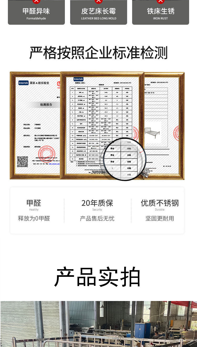 • 304 두꺼운 스테인레스 스틸 + 스테인레스 스틸 침대 보드