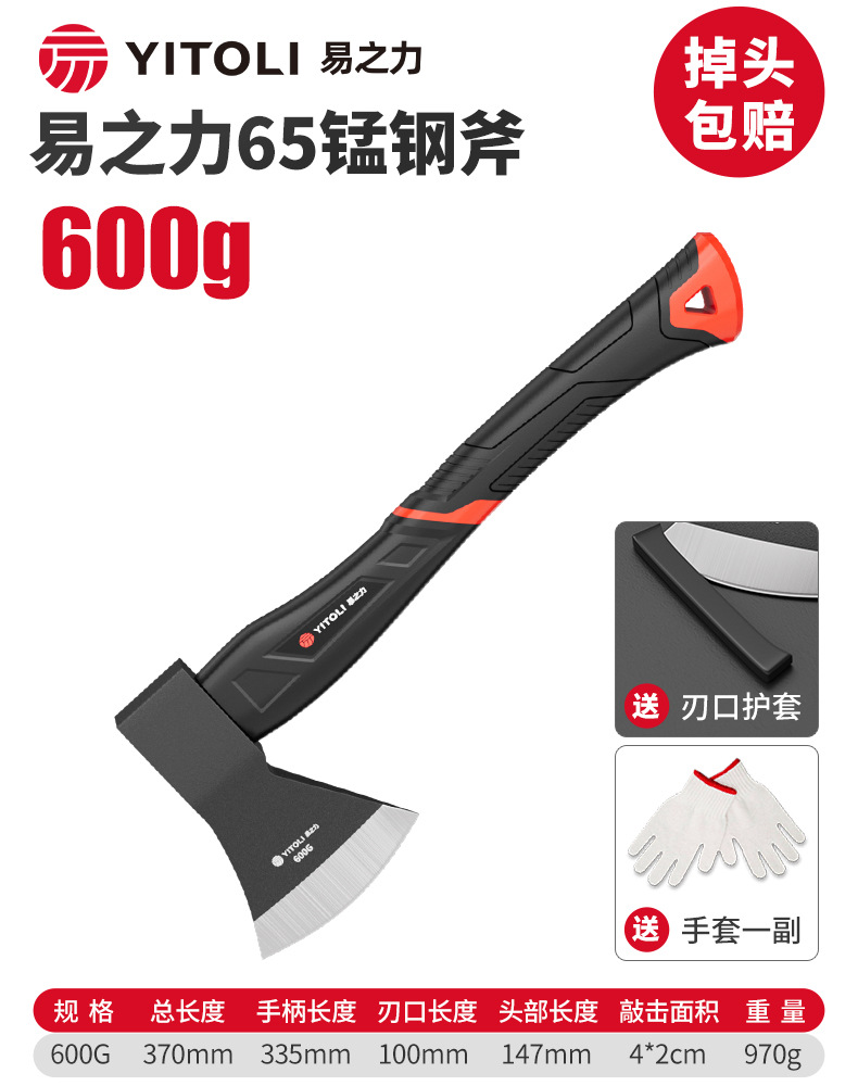 • [망치와 도끼 겸용] 확장 플라스틱 코팅 손잡이 도끼 600G(칼날 보호 커버 + 장갑 포함)로 강철 막대를 부러뜨릴 수 있습니다.