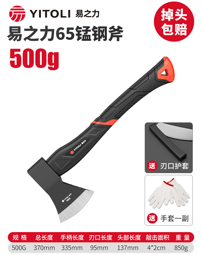 • [망치와 도끼 겸용] 확장 플라스틱 코팅 손잡이 도끼 500G(칼날 보호 커버 + 장갑 포함)로 강철 막대를 부러뜨릴 수 있습니다.