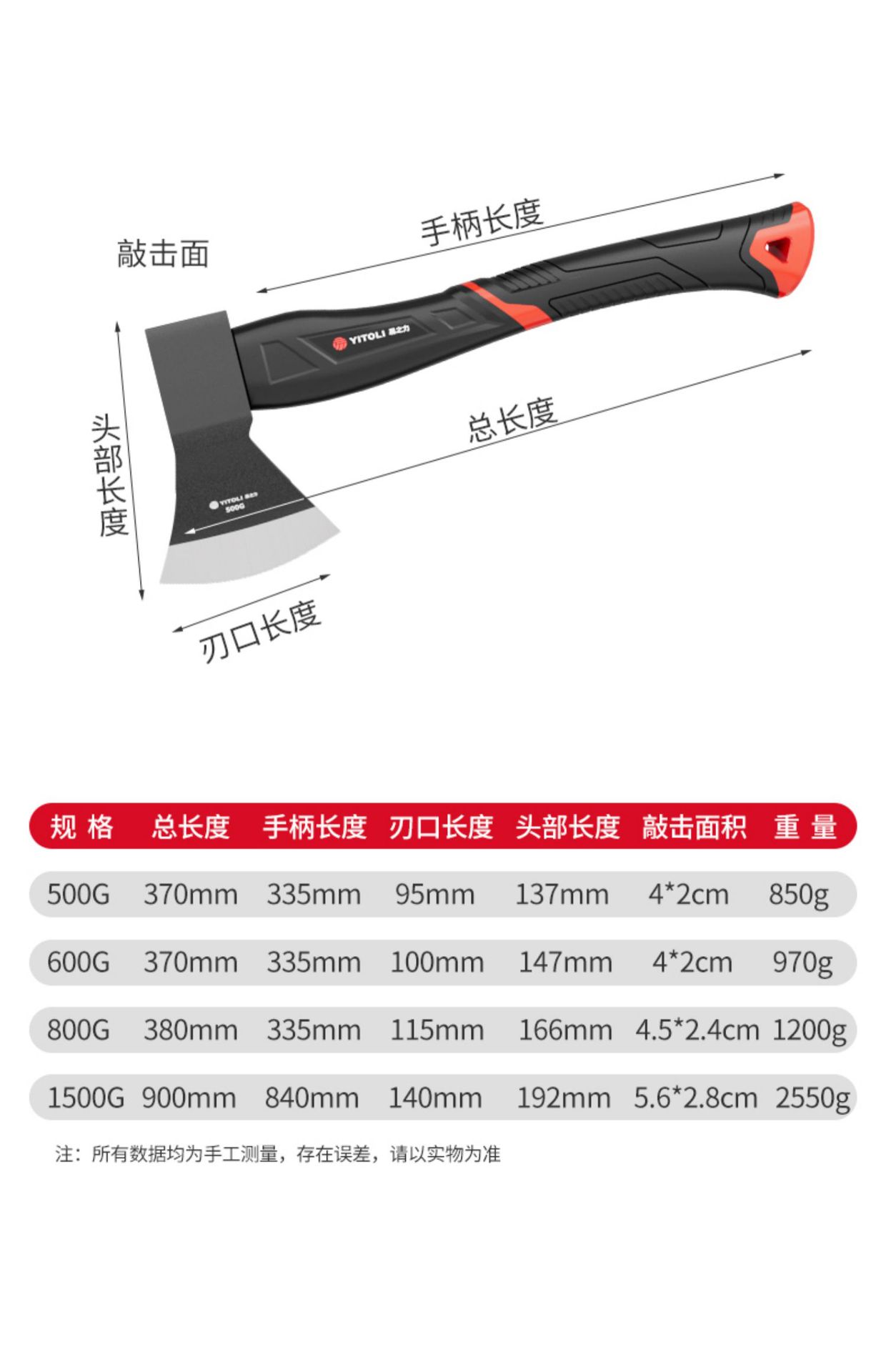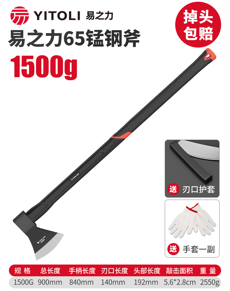 • [망치와 도끼 겸용] 확장 플라스틱 코팅 손잡이 도끼 1500G(칼날 보호 커버 + 장갑 포함)는 강철 막대를 부러뜨릴 수 있습니다.