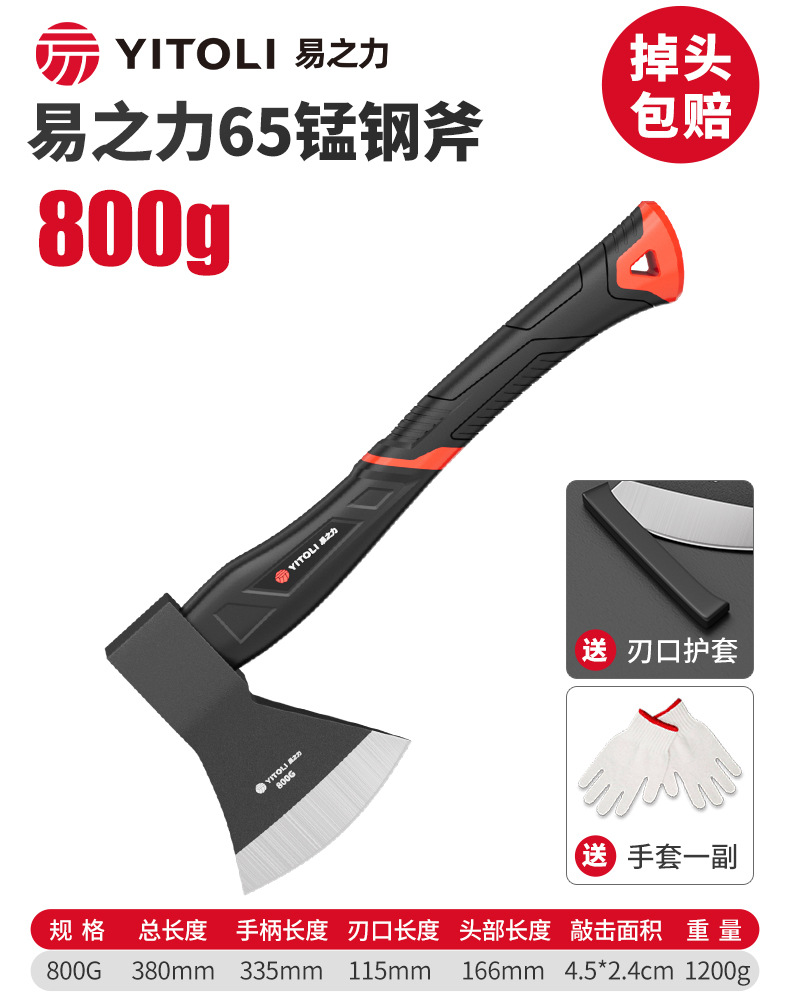• [망치와 도끼 겸용] 확장 플라스틱 코팅 손잡이 도끼 800G(칼날 보호 커버 + 장갑 포함)로 강철 막대를 부러뜨릴 수 있습니다.