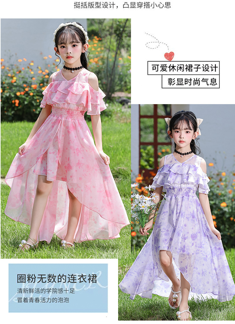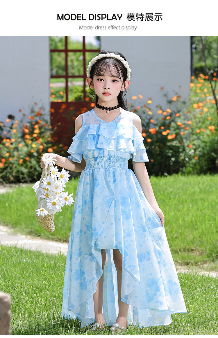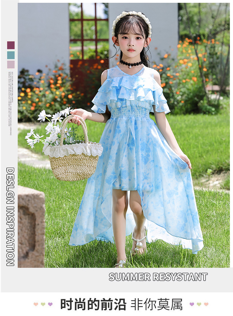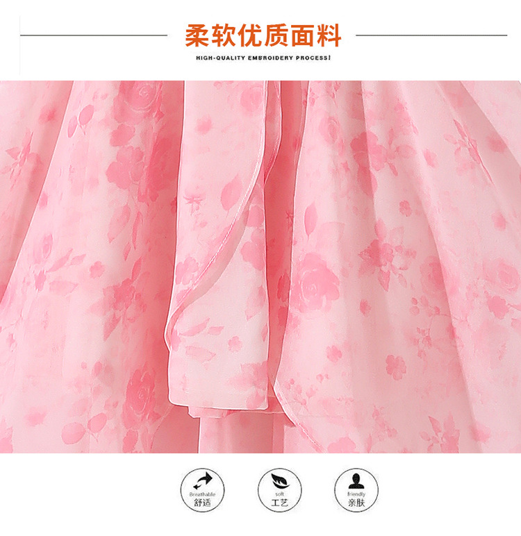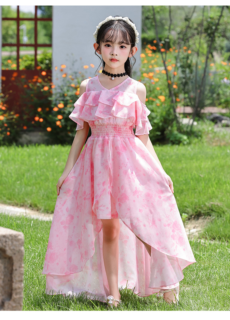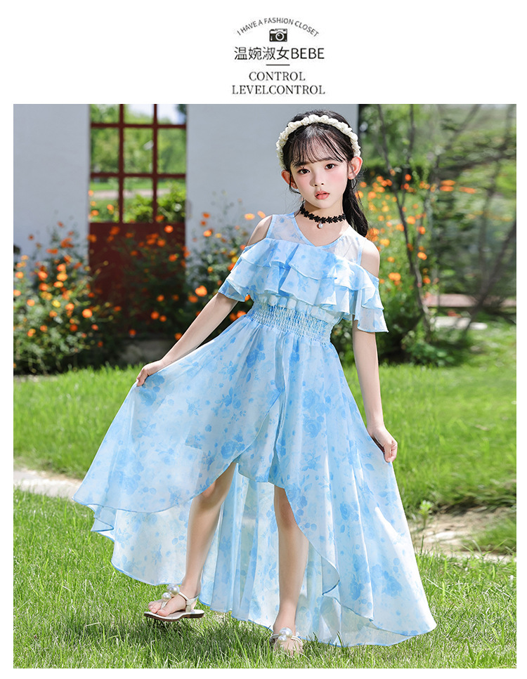 여자 드레스 2025 새로운 여름 쉬폰 꽃 패션 얇은 중대형 어린이 긴 드레스 공주 스타일 스커트 여름스토어 가기