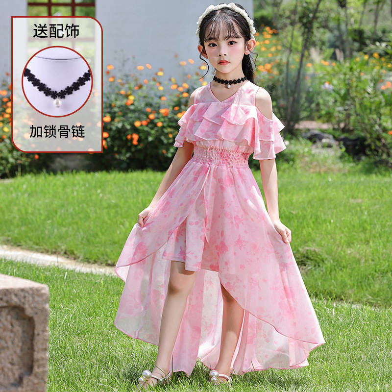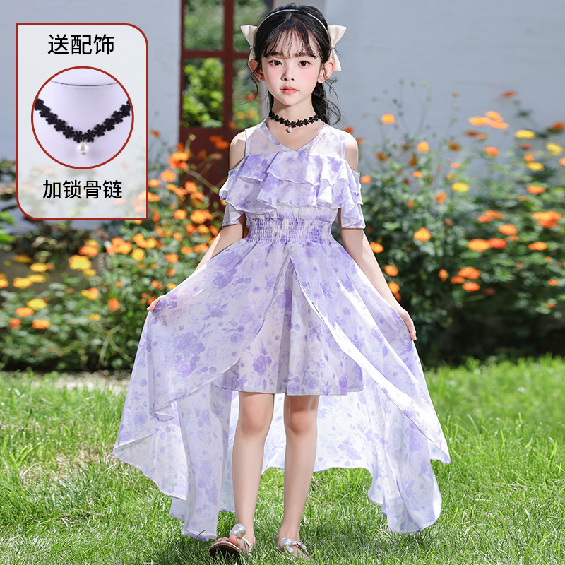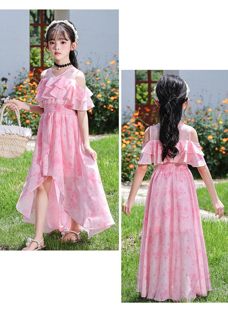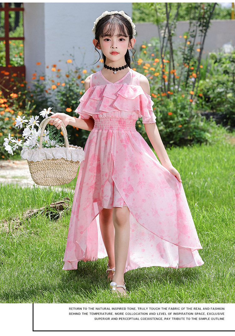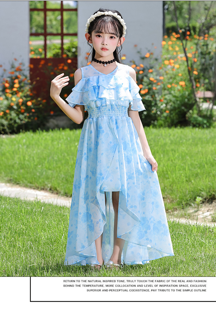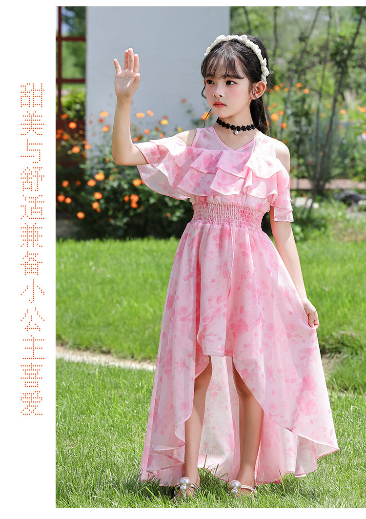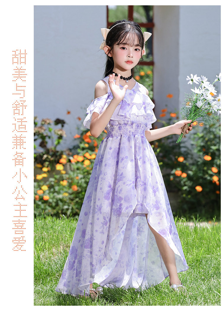 여자 드레스 2025 새로운 여름 쉬폰 꽃 패션 얇은 중대형 어린이 긴 드레스 공주 스타일 스커트 여름스토어 가기