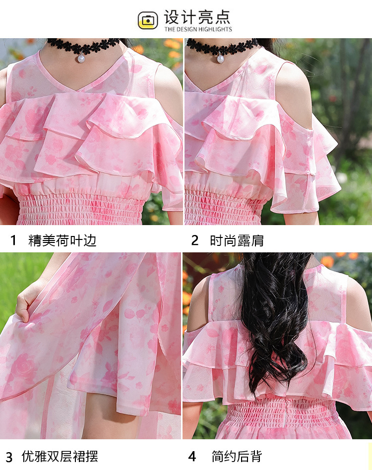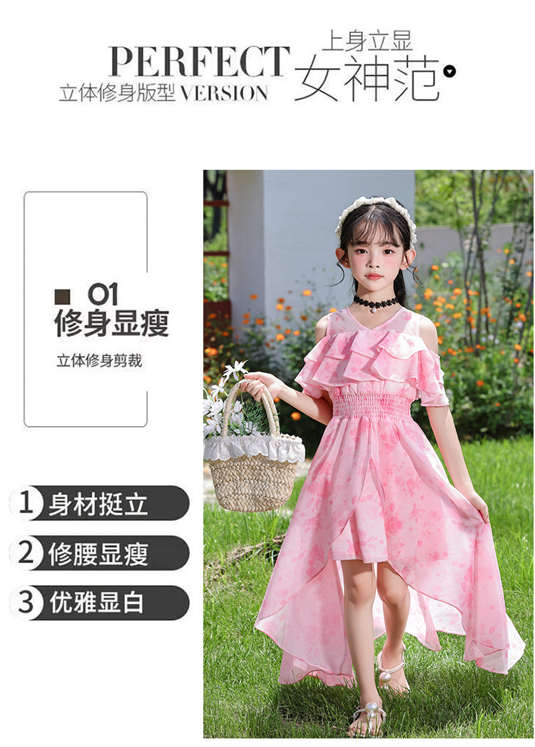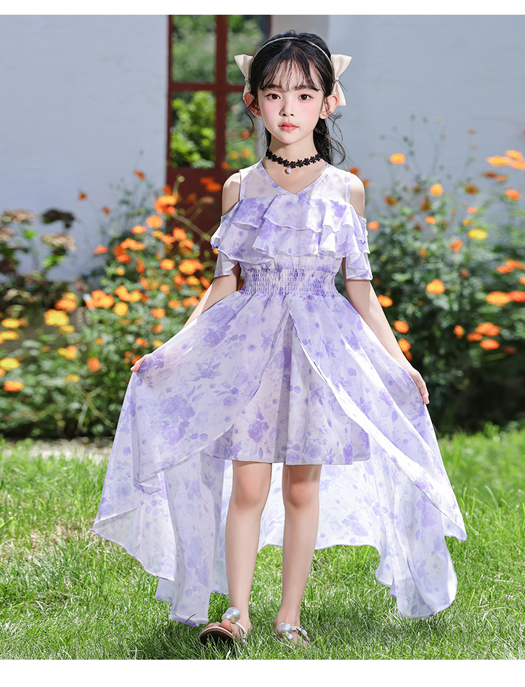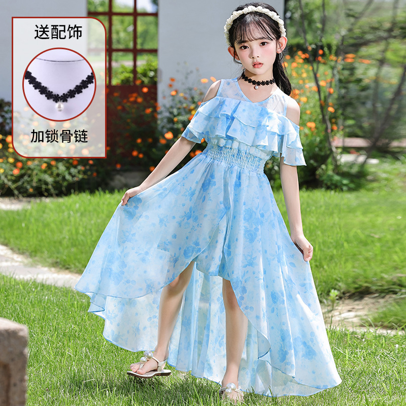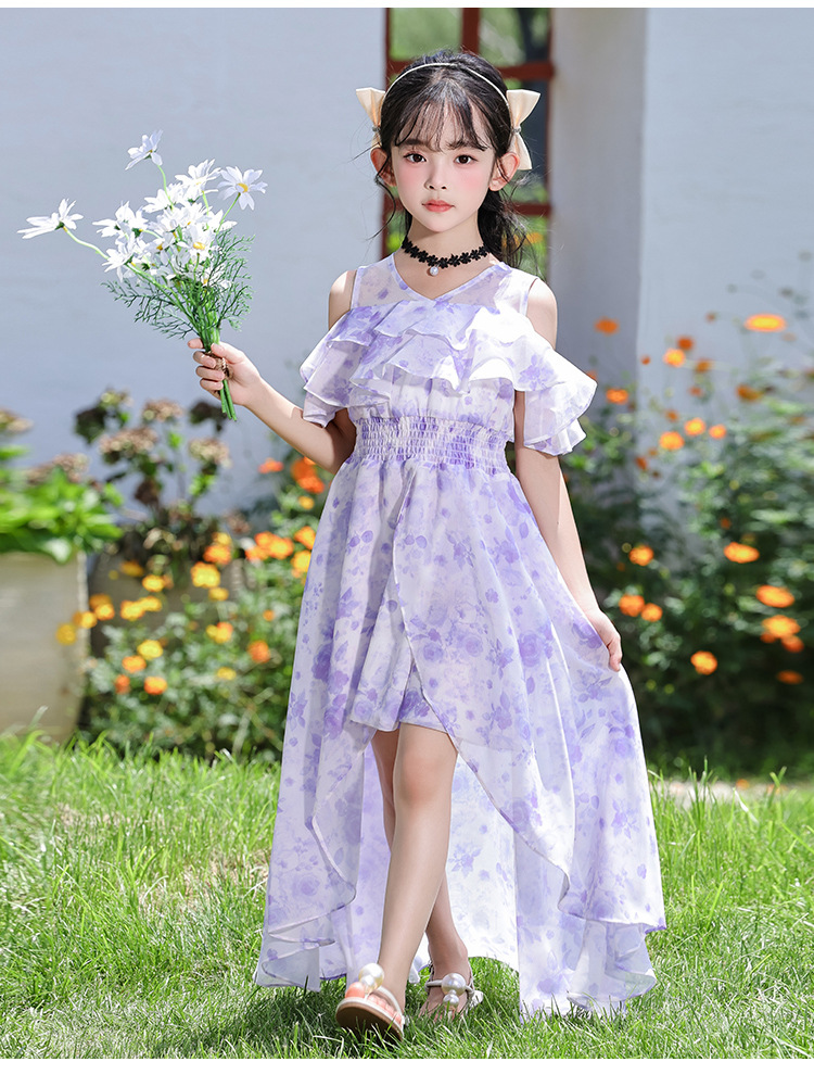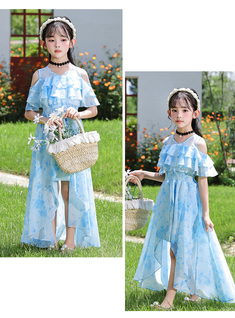 여자 드레스 2025 새로운 여름 쉬폰 꽃 패션 얇은 중대형 어린이 긴 드레스 공주 스타일 스커트 여름스토어 가기