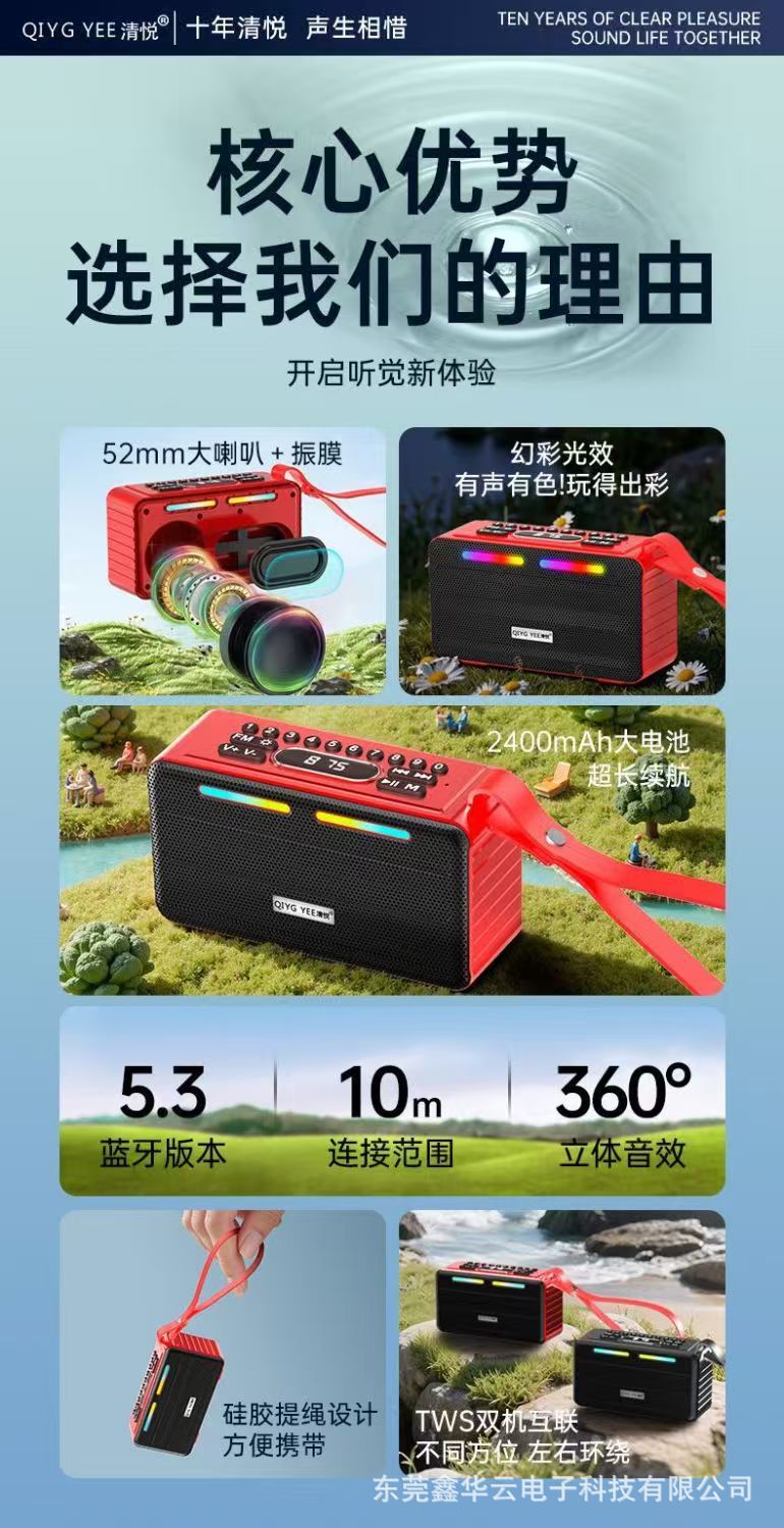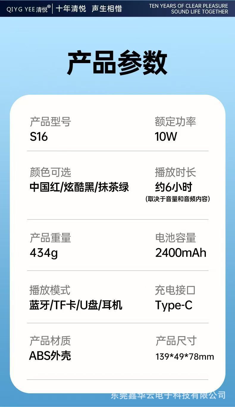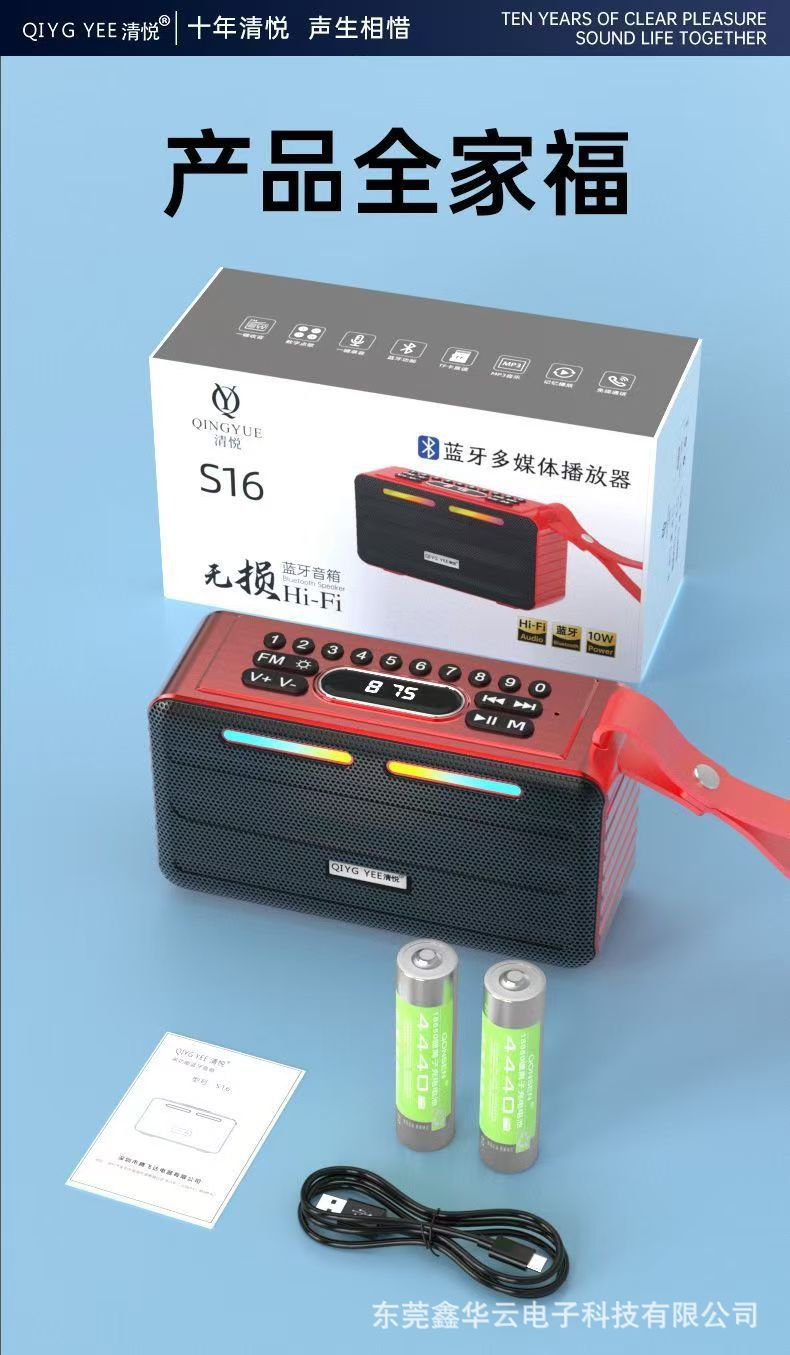 Qingyue S16 무선 야외 블루투스 스피커 다기능 휴대용 카드 MP3 플레이어 대용량 서브 우퍼